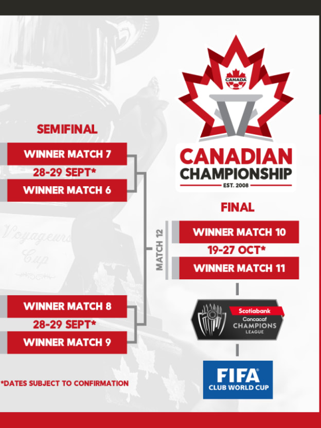 Valour FC in the quarter-finals, which are set to be played between Sept. 14-22. Canada Soccer also revealed dates for the semi-finals later in September (Sept. 28-29) and the final, set to be played sometime between Oct. 19 and 27. “We are excited to see the return of the Canadian Championship in 2021 with an updated brand identity and the return of the 13-team format that makes the competition truly and uniquely Canadian,” said Canada Soccer President Dr. Nick Bontis in a release. “As we turn the corner on the COVID-19 pandemic, we look forward to returning to stadiums filled with fans cheering their clubs on in pursuit of a chance to play in the Concacaf Champions League and FIFA Club World Cup competitions.” Monday’s announcement also brought a new logo for the 14-year-old competition, featuring its trophy – the Voyageurs Cup – prominently in the design. The winner of the Canadian Championship will represent Canada in the 2022 Scotiabank Concacaf Champions League. CF Montreal is the reigning champions after capturing the 2019 title over Toronto FC.
