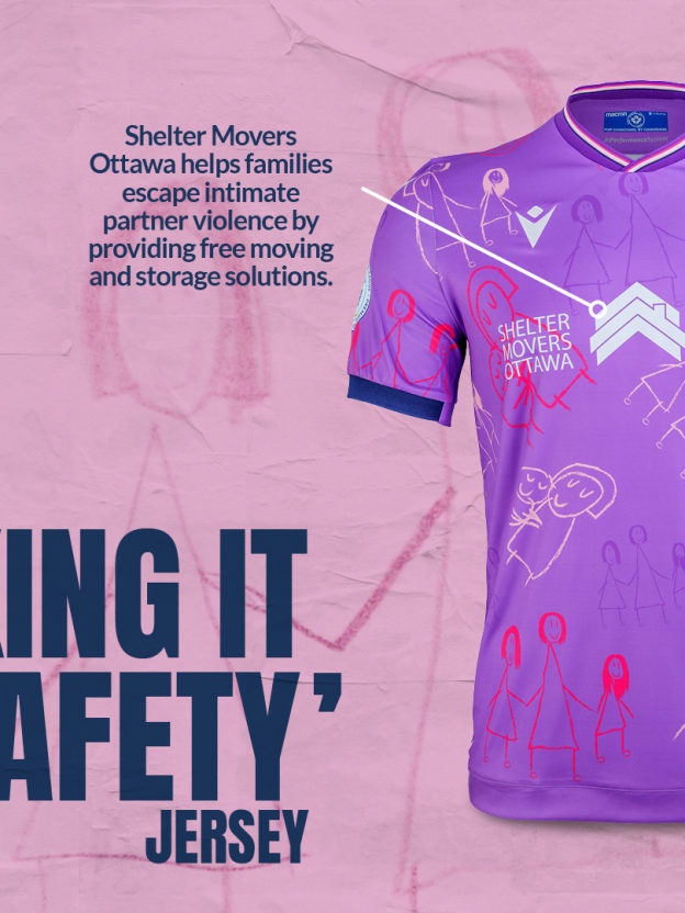 When they step out onto the TD Place pitch on Saturday to face Pacific FC, Atlético Ottawa will have a brand new look. The club will be debuting the ‘Making It To Safety’ third kit, a stunning purple strip created in partnership with Shelter Movers Ottawa, and dedicated to survivors of intimate partner violence. Shelter Movers is a non-profit organization which provides free moving and storage services to individuals who are fleeing violence or abuse. The kit is part of an ongoing partnership between the club and the organization dating back to last year. “As do many things in this city, it starts with a phone call and it turns into an amazing opportunity,” Wendy Mitchell, chapter director of Shelter Movers Ottawa, told CanPL.ca. “I got a call from the team saying ‘Hey, we’re really interested in what [you] do, is there any way for us to get involved.’ I said, why don’t you come out for a move and get a feel for what the organization is about, and then we can take it from there?” So a year ago, in May 2022, then Atleti captain Drew Beckie and a group of staff volunteered, helping a young mother move out of a shelter and into a new home. After that experience, all of them wanted to know how they could continue to help. In the fall of last year, another opportunity presented itself when Shelter Movers held a special gala event in celebration of their 1,000th move. Atlético Ottawa’s Zachary Roy and Ballou Tabla attended, helping out with an immersive experience where attendees created marker drawings of what home meant to them.