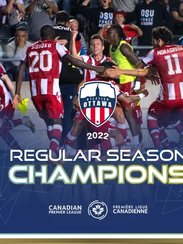 Atlético Ottawa officially clinched the Canadian Premier League’s 2022 regular season championship on Saturday night after Pacific FC lost 1-0 to Cavalry FC. With the Tridents now locked in at 47 points at the end of their regular season campaign, no CPL side can pass Ottawa’s club-record total of 48 — even before Atleti play their 28th match on Sunday evening. After finishing bottom of the table in 2021, Ottawa under new head coach Carlos González have had a vastly improved season, with 13 wins, nine draws, and five losses plus one additional match left to play (against York United on Sunday at TD Place). As a result of winning the regular season title — the first title in club history — Atlético Ottawa have also ensured home field advantage for themselves throughout their first playoff run. They’ll host the second leg of the semifinal on Sunday, Oct. 23, and if they win that tie, they’ll host the CPL Final at TD Place the following weekend. Ottawa will celebrate their regular season title after their final regular season match, kicking off at 6 p.m. ET at TD Place.
