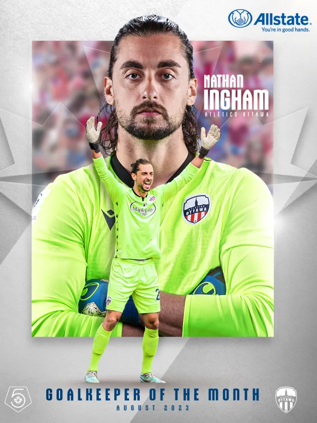 Atlético Ottawa’s Nathan Ingham has been named Canadian Premier League Goalkeeper of the Month for the month of August. Ingham was outstanding during Ottawa’s undefeated month, keeping two clean sheets and allowing just four goals in four matches. He held two clean sheets, against Pacific and Forge, while making 14 saves and appearing in the league’s Team of the Week twice. > An incredible diving stop from @nateybird1 capped off an outstanding performance from the @atletiOttawa keeper, earning him the @AllstateCanada Save of the Match