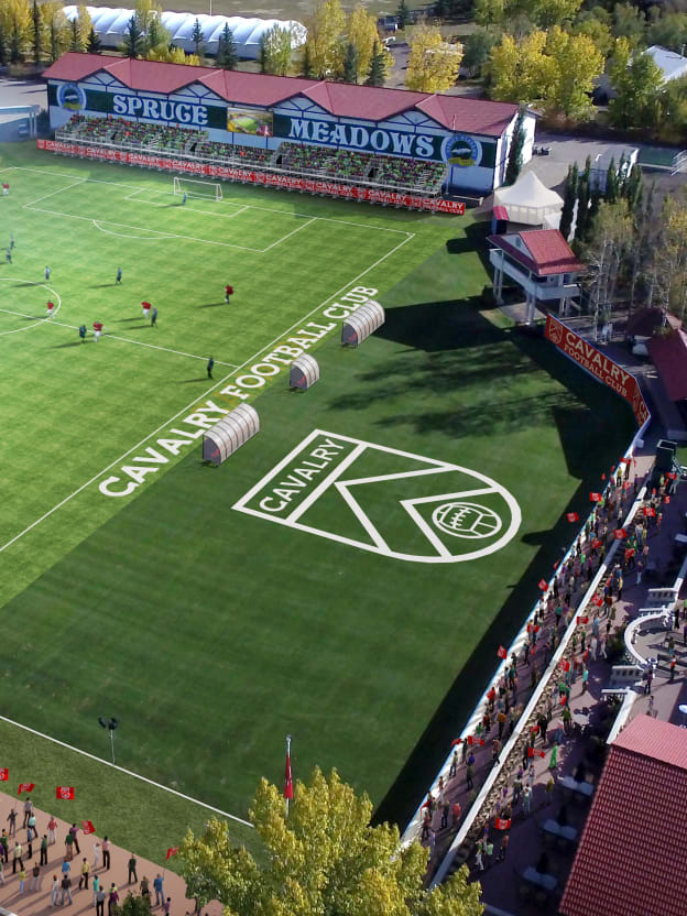 A world-renowned equestrian facility will bring one of the most attractive professional soccer experiences to Alberta. Situated on the southern edge of suburban Calgary, Spruce Meadows quite literally has one foot in cattle country. Now, Cavalry FC intends to transform this showjumping home into a soccer spectacle that will offer one of the most unique professional soccer experiences in Canada — if not the world. Sitting side-by-side with the iconic International Ring, Meadows on the Green is just one of several spectacular arenas inside Spruce Meadows, a venue Cavalry FC coach Tommy Wheeldon Jr. has referred to as Canada’s equivalent to New York City’s “Central Park.” Because, as the club frames it, walking into Cavalry’s venue from Spruce Meadows’ “Pre-Game Plaza” will be like walking into hallowed grounds. Additional stands along the north hill at Meadows on the Green will boost capacity to 6,000 on Canadian Premier League match days. The east grandstand is akin to seating at Fulham’s Craven Cottage, an old-school English stadium with columns and covered seating, the sort befitting the grandeur of Spruce Meadows. Partially fitted with a safe standing area, the south grandstand sits just five metres from the goal line — perfect for the club’s Foot Soldiers supporters group. Players will walk out to the pitch from the nearby southwest corner, under an archway that previously welcomed horses to the venue. “It will prove to be an awesome way for opposing players to enter the stadium for the match,” Ian Allison, President of Spruce Meadows Sports & Entertainment, said. “And inspiring for our own players who will have their supporters group literally five metres from the pitch.” Looking for a more relaxing experience? Members of Cavalry’s FC’s “Officers Club” receive hot food service, the ability to walk down to the pitch during the match, a patio, air conditioning and monitors that will show the match. “It will be a very unique venue to watch the game, especially with the sightlines, proximity to the pitch and all the amenities you will have,” Allison added.