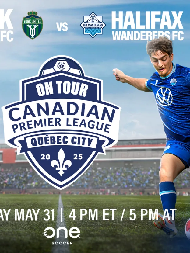 The 2025 “On Tour” match will see York United FC and the Halifax Wanderers face off at Telus Stadium at Laval University in Québec City. It will be broadcast nationally and internationally on OneSoccer, the dedicated home for soccer in Canada, on Saturday, May 31 at 7 p.m. ET/4 p.m. PT.