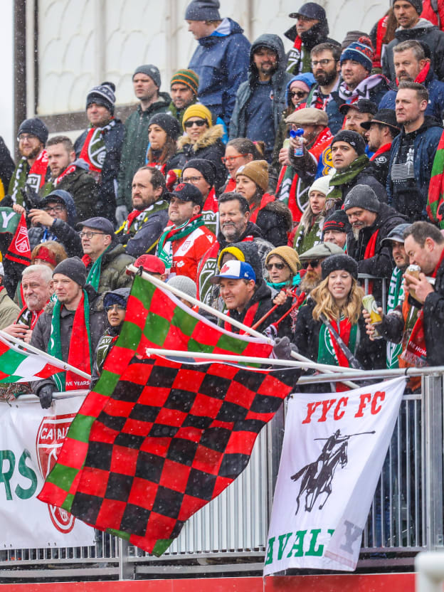 For members of the Foot Soldiers supporters group in Calgary, their sheer numbers have kept morale high during the Canadian Premier League’s COVID-19 stoppage. Cavalry FC’s major supporters group was beginning preparations for the 2020 CPL campaign when things were shut down in March. Memories of big crowds of Cavalry fans jammed into a local pub seem like a lifetime away for Foot Soldiers member Sean Clarke. But the group’s passion for their hometown team has grown during this break. “There’s a level of natural growing interest, even now,” Clarke told CanPL.ca. “We’ve been able to harness around a couple of hundred people that are in this for the long haul.” The Foot Soldiers, who occupy ATCO Field’s south stand, have grown in numbers steadily since Cavalry kicked off last year, with the original Calgary Foothills supporters group bringing on more and more people at the pro level. For Clarke, that momentum has compounded – strong, early interest from hundreds of Calgarians has kept the conversation alive during these difficult times. “The number of people who came to a match saw us on the end and joined, has made the difference,” Clarke said, Calgary was clearly smitten with the Cavs early on in the 2019 CPL season, so much so that new members of the Foot Soldiers went on to organize away trips months later – including to Cavalry’s historic Canadian Championship victory over the Vancouver Whitecaps at BC Place. Back home, ATCO Field at Spruce Meadows is set for some off-season upgrades, including floodlights. Clarke hinted at potential changes to their home in the stands, including a pulley system for tifos behind the supporter’s section and a capo stand. “That tifo we made for (Finals 2019) had five or six people hanging up the two poles,” Clarke said. “That was a bit tedious. They were doing a rigging system to hoist tifos behind us, too. We’re only six rows deep so it makes things difficult. “It’s just ways to make some of the everyday things we do a bit easier.” Exactly when Clarke and the Foot Soldiers will be able to return to Spruce Meadows is unknown. While he waits, Clarke admits some out-there ideas have crossed his mind, including watching closed-door matches in pubs. Socially distanced, of course – no swaying arm-in-arm after a Sergio Camargo screamer. Heck, why not watch the match drive-in style? “I’d gladly have fans over to my place. Pull up a chair, toss a projector on the side of the house,” Clarke said. Invites are in the mail, Cavs fans.