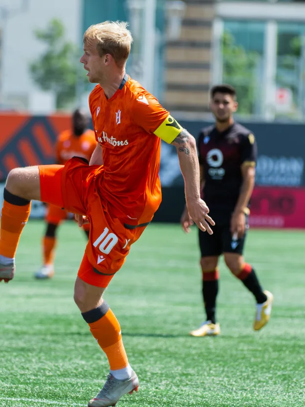 Don’t call it a crisis. Don’t call it a mentality issue. Whatever ails Rob Gale’s Valour FC, it’s not in their character. Take, for example, his team’s showing against Forge on Saturday – resilient as ever, the visitors from Winnipeg took the game to the home side in sweltering conditions – teetering on +48 degrees Celsius with humidity – over 90 minutes of intense football. A penalty shout missed, another given, battles in the box producing just one shot from the spot in Forge’s favour. Couple that with a sublime Kadell Thomas solo effort … well, there’s your 3-1 loss, folks. But, with Valour now winless in their last eight matches, Gale isn’t looking for excuses. Only solutions. “It’s unfortunate; one penalty, either way, makes a big difference, but, to be fair, we shouldn’t have let it get into that area in the first place,” Gale told the OneSoccer broadcast crew after the match. “It was that five minutes, just right after the water break (in the 2nd half), where we switched off, and (our) legs were gone, maybe. “What I did like was the mentality in the second half (down 2-1 after the first),” Gale continued. “We got right back into it and took the game to them the entire half. Obviously, we conceded one there, but one player we had to swap right before (second half) kick-off, and another player’s gone off with heat exhaustion. They gave it their all – that’s not a club that’s got a mentality problem or a crisis, let me tell you, before you ask a rubbish question.” Gale was, rightfully, uninterested in answering that particular line of questioning, though with his side’s W column looking barren through the summer, there aren’t exactly plenty of positives to mask this particular problem. One silver lining, however, is 17-year-old Tyler Attardo, who once again found the back of the net and continues to lead his team in scoring, having now notched his third of the season. “It was scorching hot,” Attardo said, of the match. “Even warming up or sitting on the bench, you can just feel the heat on you. You’ve got to stay hydrated but it adds to that mental character. You really have to stay focused and continue to battle.” He added, of his team’s week off to regroup: “(Now) we just take it all in. You’re revising quickly. We get back to training on Monday and we’ve got to continue to work hard and continue to fight. We’ve been given a good opportunity to restart here, so we’re really looking forward to this Fall season.”