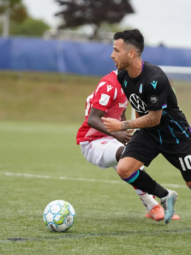 Pacific FC has taken over the third Gatorade Team of the Week at The Island Games. As chosen by OneSoccer, the first XI features six Pacific players (Marco Bustos, Alejandro Diaz, Victor Blasco, Jordan Haynes, and Kadin Chung) after their team’s back-to-back wins over Valour FC and Cavalry FC last week. Blasco, Diaz, and Bustos brilliantly orchestrated the attack for the Tridents, combining for four goals and three assists. Dixon was a standout performer in Pacific’s monumental victory over Cavalry, while fullbacks Haynes and Chung controlled the wide spaces in both victories. HFX Wanderers FC midfielder Andre Rampersad put in an industrious performance against FC Edmonton, notching two assists and a match-leading five interceptions. Goalkeeper Christian Oxner’s massive penalty save in that match put him in the CPL’s weekly best XI, and he is joined by HFX centre back Peter Schaale. York9 FC’s Joseph Di Chiara makes his first team of the week appearance after a brilliant stint on PEI, most recently marked by a brace against against Forge FC in the 905 Derby. Forge defender Daniel Krutzen rounds out the team of the week after scoring the winner against Atlético Ottawa.