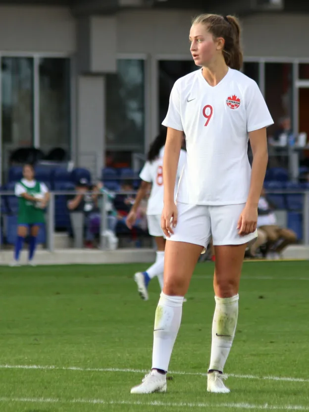 EDINBURG, TEXAS – After enduring a year-long goal drought for her country, Jordyn Huitema has rediscovered her scoring form for the Canadian women’s team. Huitema made a bit of history at H-E-B Park on Saturday evening when she scored five times in Canada’s 9-0 romp over Jamaica at the Concacaf Olympic qualifying tournament. In doing so, Huitema became only the second player to bag five goals in a match for Canada. Silvana Burtini, a member of the Canada Soccer Hall of Fame, did it twice – she scored five vs. Mexico in 1994, and then netted a team-record eight vs. Puerto Rico in 1998. Not even Christine Sinclair, the newly crowned Queen of all international goal-scorers, has ever managed to score five times in a single game for Canada – the iconic Canadian captain has scored four goals in a match on four occasions in her international career, but never five. “With the amount of skilful players who’ve come before me, it’s honestly shocking that I’m the second player to do it. But I’m very grateful, very humbled,” Huitema offered after the Jamaica game.