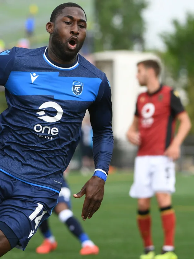Jeff Paulus has made a few alterations to the Clarke Field pitch as his team prepares to face York9 in the second qualifying round of the Canadian Championship. Coach Jimmy Brennan’s men secured their coming dates with Eddies after beating AS Blainville 1-0 on aggregate in the first qualifying round. Paulus recognizes that the small-as-FIFA-will allow pitch that York9 calls home may cause visitors some problems. At only 100 yards long and just a little more than 50 yards wide, when there are 22 players on the field, there isn’t a lot of open space on it. Paulus put cones up on the Clarke turf so the team trained on a field that’s shrunk to York’s dimensions. “It’s going to change the way you play,” Paulus said. “It changes the game 11 v 11, when you lose a bit of space to play. You’ve got to alter what you do. I think we’re fortunate as a club here, we’ve got players who can play a few different styles.” He said the shorter field means that quick strikers don’t have a lot of real estate to work with if they want to try and make runs past the back line of defenders. And the narrow pitch limits fullback play. “It might not seem like a lot, but 10 yards can make a big difference. And, with the lack of width, if you want to get overlapping players out wide, you want to have attacking fullback, well their space is limited. There will be a couple of things you have to change. “Advantage for them. When everything is said and done, I think their stadium will be a great environment, a great atmosphere. And advantage to the home team for having a home field that maybe matches the way they want to play. If it was us, I would build my roster based on the size of that field. That would factor in, because that would make it a fortress. And if that’s what they’re able to do, more credit to them.” And Paulus isn’t reading too much into York only getting by Blainville by a single goal. He said that, because York played almost the entire first month of the season on the road, it’s hard to get a read on what kind of team it will evolve into. It will take some time at home for the side to gel. “I said this a long time ago, that Blainville was the banana peel,” said Paulus. “That was the one a team could slip up on. They’re organized, they’ve been together a while. They’re a good side, with some players who have played at very good levels. I thought Blainville was very good in the second leg and I thought they deserved a bit better, to be honest. That’s not to give York locker-room material, but I watched the game and I thought Blainville was full credit for their efforts.” And, with Nathan Ingham in goal and Kyle Porter a part of the starting XI, the fact that a couple of Eddies from the NASL days now wearing the nine stripes will add a bit of sauce to the matchup. “We know some of these players very well, because they’ve played for us,” said Paulus. “I think Jimmy’s got a good squad, and I think they’ve got a very good coaching staff and management team… Now that they have some time at home, to play in front of their own fans, they’ll be able to have full training weeks without having to travel anywhere, they’ll get it together.” And FCE striker Tomi Ameobi, with five career goals in the Canadian Championship already to his name, is relishing the chance to return to the Cup competition. And he knows he might be staring down his old teammate, Ingham, when he has a sniff of a chance. “Nathan, obviously, spent a couple of years here,” said Ameobi. “He’s an excellent goalkeeper. In my opinion, one of the best in the league. He’s done well for himself this season, and I think they (York9) have been unlucky not to have more points in the league. And, playing in the Cup, anything can happen. That’s what makes Cup games so special.” With the Eddies going four straight CPL games without a goal, the pressure is on the attack in order to get a precious road marker.