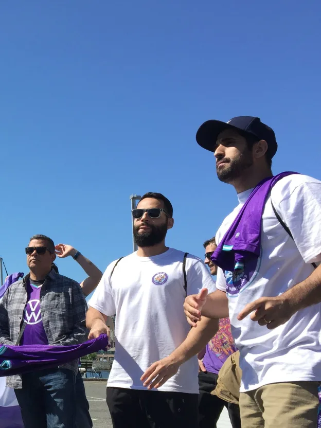 The chants carried across Victoria’s Inner Harbour, down the steps from the pedestrian-filled Bastion Square: “Oh me! Oh my! I heard the Wanderers cry. Oh me! Oh my! I think I’m gonna die!” On the Saturday of Easter Weekend, Pacific FC supporters were purple-clad and full-throated in preparation for their home opener against HFX Wanderers FC on April 28th. Now, as mere days remain until the Canadian Premier League’s opening weekend, the league’s longest-running supporters’ group is ready for its moment in the spotlight. Though their newest team has yet to play its first professional match, the Lake Side Buoys have been a fixture of Greater Victoria’s soccer scene for the past ten years. Boisterous and kilt-clad, the supporters’ group began in 2009 with the arrival of Victoria Highlanders FC in the USL’s Premier Development League. Playing out of the former Bear Mountain Stadium in Langford — since redeveloped as Westhills Stadium — the Highlanders were Victoria’s second taste of high-level soccer, after the short-lived Victoria Vistas of the former Canadian Soccer League. It was there that the Lake Side Buoys’ story began. “At the old Westhills, there used to be a little pond,” Mike Schlodder, one of the Lake Side Buoys’ founding members, told CanPL.ca. “And we called it the Lake.” “There were aluminum bleachers behind the nets, and we were standing, singing, and chanting. We just got right into it from the get-go,” added Ted Godwin, vice president of the Lake Side Buoys. “We wore kilts, we brought bagpipes. We thought it’d be hilarious.” The neighbouring Vancouver Whitecaps had the Southsiders as their supporters. Godwin and friends thought, “Well, we’re Lake Side.” The group added the Buoys moniker as a tongue-in-cheek nod to Celtic FC supporters, who called themselves Bhoys. “Our specialty, our favourite, was always harassing goalkeepers,” Godwin told CanPL.ca. “As the [first] season went on, what became really cool for us was at the end of the match, the keepers would turn around, smile at us, and give us a clap. Because they enjoyed us interacting with them.”