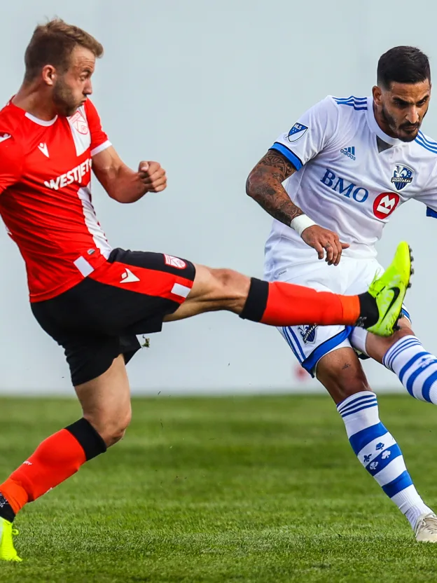 Le tout premier parcours du Cavalry FC en Championnat Canadien a pris fin mercredi soir, alors que l’Impact de Montréal de la MLS a remporté le match retour de demi-finale par la marque de 1 à 0 à Spruce Meadows, s’imposant 3 à 1 au cumulatif. « Nous avons joué quatre matchs face à des rivaux bien établis en MLS et à chaque fois c’était des matchs d’un but, a expliqué Tommy Wheeldon Jr. après la rencontre. Ça démontre le niveau que nous avons atteint, alors que nous n’avons même pas 100 jours d’existence. Donnez-moi un autre 100 jours et vous verrez où nous serons. » L’Impact a pris les devants tôt dans le match décisif, quand un corner tiré par Saphir Taïder a trouvé Anthony Jackson-Hamel au point de penalty du Cavalry à la 13e minute de jeu. Le Québécois s’est débarrassé de son couvreur, Mason Trafford, pour rediriger le ballon de la tête derrière Marco Carducci. Le Cavalry s’est repris de belle manière en fin de première demie, cherchant un premier but avec insistance. Le défenseur central, Dominick Zator a été particulièrement menaçant, passant bien près de créer l’égalité à plusieurs reprises, sur ballon arrêté. En 2e les chances ont été plus rares et éparpillées pour la troupe albertaine, qui a menacé presqu’exclusivement sur phases arrêtées, alors qu’elle cherchait le premier des deux buts dont elle avait besoin pour niveler la marque globale. La meilleure opportunité du Cavalry est venue sur son avant-dernier tir du match, alors que Clément Diop a dû se distinguer avec un arrêt clé, pour assurer la place de l’Impact en grande finale de la Coupe des Voyageurs. « Nous savions que nous allions possiblement devoir marquer au moins un but, venant ici avec une avance de 2 à 1, avec l’état du terrain, avec la façon dont [le Cavalry] joue ici, et que nous allions subir beaucoup de pression, a expliqué Rémi Garde. J’aimerais féliciter mon équipe, car aujourd’hui nous nous sommes battus ensemble, sur chaque ballon. Si nous pouvions répliquer cet esprit de corps sur chaque match, nous serions une équipe encore plus redoutable. » Le prochain duel du Cavalry est prévu seulement 48h après ce match face à l’Impact, avec la visite de leurs rivaux albertains FC Edmonton, vendredi (21h00 HE, 19h00 HM, sur OneSoccer). L’Impact disputera quant à lui les honneurs du Championnat Canadien au Toronto FC, tombeur du Fury d’Ottawa, dans l’autre demi-finale. Le match aller de la série ultime aura lieu le 18 septembre, du côté de Montréal, au Stade Saputo, puis le match décisif le 25 septembre, au BMO Field de Toronto. Les joueurs-clé Dominick Zator (Cavalry FC) Bien qu’il n’ait pu trouver le fond du filet devant un autre club de la MLS, après avoir fait mal aux Whitecaps avec son but lors du match-retour, l’arme du Cavalry sur ballon arrêté a été une menace constante. Zator a également été très propre défensivement sur son flanc gauche. Anthony Jackson-Hamel (Impact de Montréal FC) Sa tête exceptionnelle a su donner une certaine tranquillité à son équipe tôt dans le match. Se démarquant efficacement de la couverture musclée de Traf ford, Jackson-Hamel a mis les siens dans le siège du conducteur avec ce but d’assurance. Maximiliano Urruti (Impact de Montréal FC) Prenant la place d’Ignacio Piatti, blessé, Urruti a été le point d’ancrage de la distribution offensive de l’Impact. Alimentant savamment Jackson et ses autres coéquipiers, l’Argentin a gardé la défense du Cavalry sur le qui-vive.