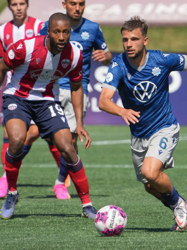 Lorenzo Callegari came into the Canadian Premier League with high expectations after previously spending time in the setups at Paris Saint-Germain and Genoa, and in the French youth international teams with some of the world’s leading players. Saturday’s match was his first competitive appearance for the Halifax Wanderers after joining the club this offseason. He started in midfield alongside Andre Rampersad and Aidan Daniels, and made an immediate impact. Callegari stepped in front of former Wanderers forward Samuel Salter in the 16th minute to win the ball back for Halifax, sending Aidan Daniels back the other way on a quick counter-attack. Daniels laid the ball off for Zachary Fernandez, who made no mistake with a low shot to the back post for the game’s first goal. It was started by Callegari’s tackle, one of two the Frenchman won on the day.