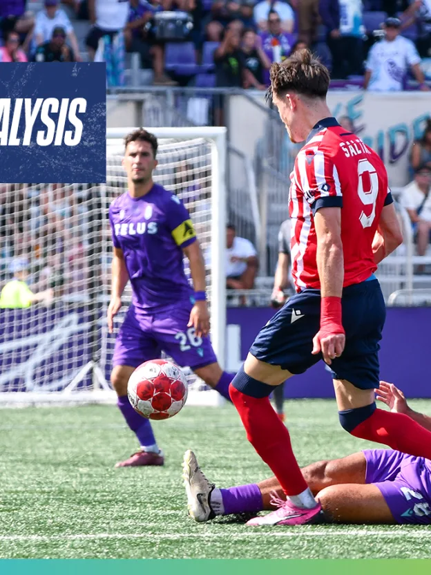 Making his first CPL start of the season after rejoining the club on loan a couple of weeks ago, Ilias Iliadis put in a great shift on the left side of Atlético Ottawa’s back three, and scored the second goal of the match directly from a corner kick.