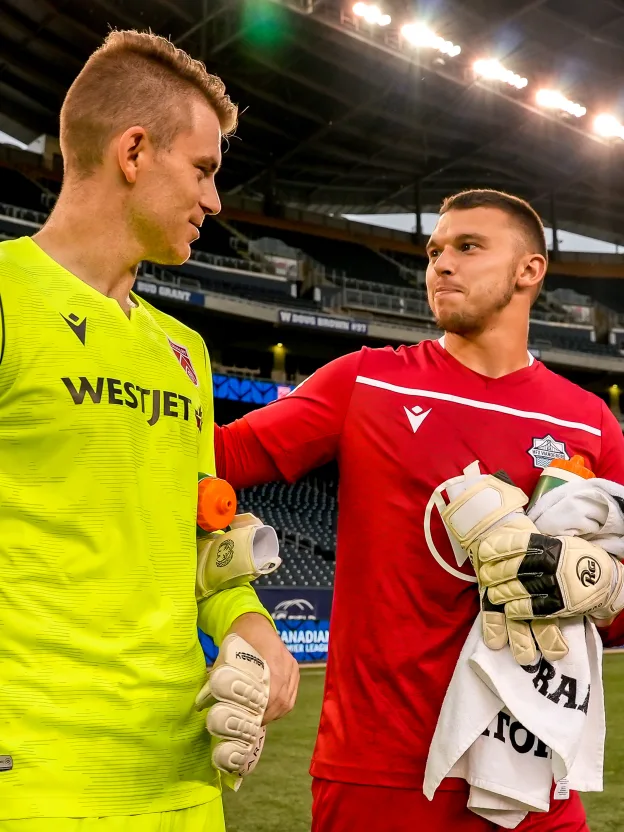Playing in his first match for his new club, and his first since a 2–0 loss to Pacific FC (when he was a member of his hometown Valour FC) on October 19th, 2019, new Cavalry backup goalkeeper Tyson Farago put up a strong performance. Farago made a pair of important saves in this one, also claiming one ball into the box and completing 19 of his 24 passes. “He was good, he earned it,” said Cavalry head coach Tommy Wheeldon Jr. after the match. “He’s been doing a lot of great work with Marco (Carducci) and our goalie coach Jordan Santiago. We’ve brought him in for a reason, we wanted someone with a bit of experience — he’s played eight years as a pro, he’s a terrific guy around the locker room, he’s worked extremely hard. “He was a bit unfortunate to not be retained during 2020, and as soon as we needed a second goalie, he was top of our list, and he hasn’t disappointed. Today he’s made some big punches, big catches, and his footwork’s great — he can really stretch the play when it’s needed.