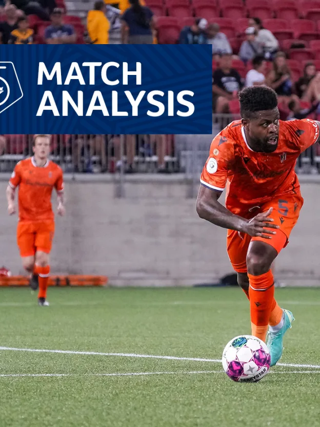 For the first time in seven matches, and just the fourth time this season, Forge FC scored the opening goal of the match on Sunday night. That goal, a rebound effort from Campbell, ignited the most dominant performance of the season to date for Forge, who really needed it after their recent struggles. The Hamilton side came into this match as one of the league leaders in all of the offensive metrics, minus the most important — goals scored. On Sunday night, the dam burst for them in York as they fired four past Niko Giantsopoulos, with a further two hitting the woodwork. “We know if you continue to do the right things, good things happen, and it has been a tough spell for us the last few games,” said Forge FC head coach Bobby Smyrniotis. “This one was well needed.” The return of Alessandro Hojabrpour, who had not played in the last four matches, was critical to the balance of the midfield as it allowed Kyle Bekker and Noah Jensen to get further up the pitch and support the club’s attacking players. Having overwhelming numbers in attack was a consistent theme for Forge during the match, as evidenced by the first goal. Borges’ first-time cross is initially missed by Rezart Rama, but Jordan Hamilton is there at the back post to fire a shot. Then when his effort is saved, Campbell is on hand to tap home. It is these kinds of numbers in the box that lessen the opportunity for the sort of ‘bad luck’ finishing that has plagued Forge of late.