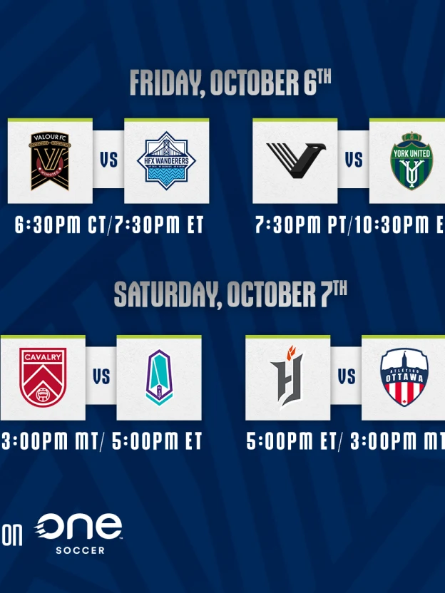 Much is still to be decided as the Canadian Premier League enters the last weekend of the 2023 regular season, with the final four matches to be played between Friday, Oct. 6 and Saturday, Oct. 7. The 2023 season finale begins in Winnipeg, MB on Friday, when Valour FC hosts Halifax Wanderers FC at IG Field at 6:30 p.m. CT/7:30 p.m. ET. Win on the road Friday and the Wanderers, who clinched their first home playoff game last weekend, will remain in contention to finish as high as second place, depending on results on Saturday. Friday night’s action will continue at Willoughby Community Park at the Langley Events Centre in Langley, BC, where York United FC will look to clinch the last available playoff spot with a victory over surging Vancouver FC, a squad riding a three-game win streak. The second match on Friday kicks off at 7:30 p.m. PT/10:30 p.m. ET. The last day of the regular season will see both remaining matches kick off simultaneously at the newly announced time of 5 p.m. ET/ 3 p.m. MT, with plenty still to be decided in the final two matches. Forge FC will host Atlético Ottawa at Tim Hortons Field, where the home side will look to clinch second place in the regular season standing with a win at home, while Atleti will hope the fight for the fifth playoff spot is still on by the time the match kicks off. At the same time in Calgary, AB, Pacific FC will look to keep the pressure on Forge in the battle for second place, and the chance to fight with Cavalry FC to host the CPL Final in their first match of the 2023 playoff. The weekend will close with a special ceremony at ATCO Field at Spruce Meadows, where CPL Commissioner Mark Noonan will present regular season winner Cavalry with the new Canadian Premier League Shield, which was unveiled last month. Once Cavalry lifts the Shield, all focus will immediately shift to the CPL playoffs and the quest to reach the marquee CPL Final championship by way of the exciting new five-team playoff format that will be contested for the first time in the CPL’s milestone fifth season. The postseason winner will lift the still to be unveiled North Star Cup and earn a coveted spot in the 2024 Concacaf Champions Cup. The run to the North Star Cup, which replaces the North Star Shield as the trophy awarded to the CPL’s playoff champions, will begin on Wednesday, Oct. 11, with the CPL Final taking place on either Saturday, Oct. 28 or Sunday, Oct. 29. The location of the CPL Final will be determined when the top two teams from the regular season standings square off for the chance to host the championship game in their opening match of the 2023 playoffs. All of the CPL’s remaining regular season and playoff matches will be broadcast on dedicated soccer channel OneSoccer, available as a linear channel on Optik TV (Ch. 980), the pay-TV service operated by Telus, one of Canada’s “big three” telecoms companies, as well as on streaming service fuboTV Canada. OneSoccer is also offered as an affordable streaming service through the OneSoccer.ca website, via Roku, Chromecast and Apple TV devices and with the OneSoccer app for iOS and Android devices.
