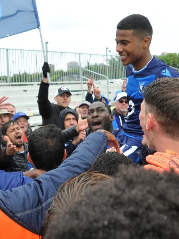 Sometimes, the soccer gods hand your story angle to you on a silver platter, carried to you by angels. Marcus Velado-Tsegaye celebrated his 18th birthday on Canada Day. That’s right, he’s a July 1 baby. So, what better time for the teenager to score his first Canadian Premier League goal? That’s right. Canada Day birthday, Canada Day goal. Thank you, soccer gods. Velado-Tsegaye’s Canada Day birthday present was the winner as FC Edmonton beat HFX Wanderers 2-0 in rainy, cool conditions at Clarke Stadium. Game time temperatures hovered around the 8 degree Celsius mark. But the supporters kept themselves warm by signing “Happy Birthday” to the scorer of the first goal. “There’s no better feeling,” said Velado-Tsegaye. “Ever since I saw on the schedule that we had a game July 1, that came in my head, scoring on my birthday. What a moment it would be. It’s just a dream coming true.” And, when he heard the supporters singing to him? “I wanted to run over and say thank you to all them,” Velado-Tsegaye said. “But I had to stay focused on the game. It was good.” FCE coach Jeff Paulus said he wasn’t aware that it was his young charge’s birthday when the game began. “This morning, I wasn’t thinking about it, to be honest,” Paulus said. “I was so focused on this (the game). But then I heard the birthday chant, and it was a nicer song than I’m used to hearing about myself on this pitch at this moment! “He’s a great young player and you saw that today. He’s rewarded our belief in him with a solid performance. And what will get overlooked because he’s scored a goal is how well he’s done defensively — how well he’s shut down (HFX FB Alex) De Carolis all game long.” Oumar Diouck scored an insurance marker in the 83rd minute, his fourth goal of the campaign. With the win, FCE finishes the Canadian Premier League spring season in third place. With their third win in a row, the Eddies may have put themselves in the conversation about who might join Forge and Cavalry as favourites to be near the top of the table for the fall season. It also marked the first time in league play that FCE has scored while wearing their blue uniforms. FCE’s previous six league goals were all scored in the white kits. Velado-Tsegaye smashed the ball under the bar, taking advantage of a rebound that was left in his path by Wanderers keeper Jan Michael Williams. The keeper dove to stop the initial shot from Bruno Zebie, but didn’t get enough on the ball with his hand. Instead of pushing it away from danger, Williams put the ball in the perfect slot for the FC Edmonton teenager. “The first one, I thought it was saveable,” said Wanderers coach Stephen Hart. “It’s greasy conditions, and these things happen. But really, through the first half, neither team threatened the net — but they got that opportunity and they scored.” HFX Wanderers, according to Opta, didn’t register a shot on goal in the game, though Mohamed Kourouma thundered a shot off the underside of the bar in the second half, and Kodai Iida’s attempt on the rebound was blocked by FCE fullback Allan Zebie.