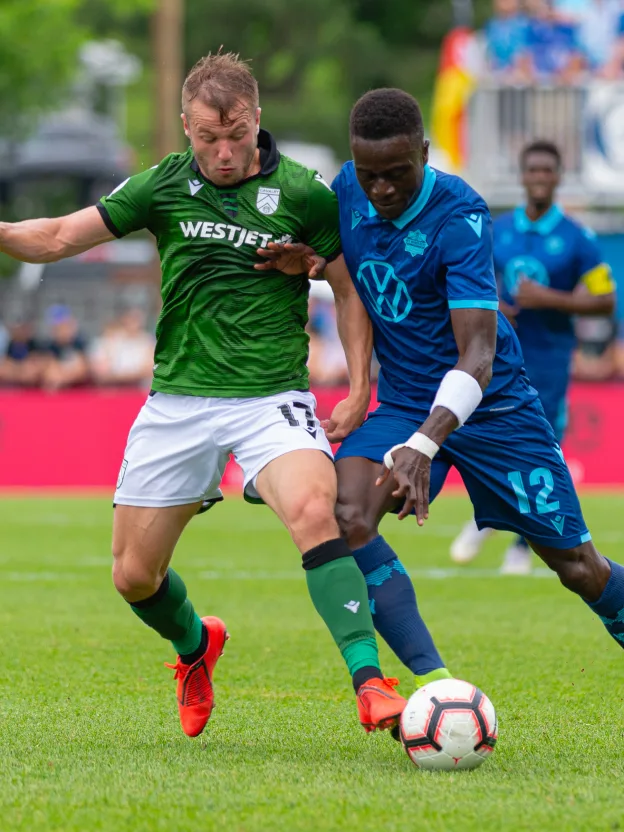 HALIFAX – It was a completely different looking HFX Wanderers FC on the Wanderers Grounds on Saturday afternoon. After playing on the same pitch three days earlier in the Canadian Championship, the Wanderers rolled out a starting XI featuring five different players in a narrow 1-0 loss to Cavalry. “I was a little bit worried about so many changes to the squad but they did very, very well,” said Wanderers coach Stephen Hart. “I have nothing but praise for the entire team today.” Peruvian midfielder Juan Diego Gutierrez started the game after being out injured since late May and defender Chrisnovic N’Sa played a full 90 minutes as he’s slowly come back from injury. “I thought they were fantastic. Guti gave everything. Alex (De Carolis), he gave everything and he stayed on the pitch. Excellent performance,” Hart said while praising the return efforts of Elton John, N’Sa and Christian Oxner. “I think it’s the most complete game we’ve played for a while anyway.” De Carolis made a start at the left fullback position and was busy all afternoon, leading the team with 71 touches. “I was happy with my performance but at the end of the day, those three points we dropped at home,” said De Carolis while saying the Wanderers are on the right path. “I thought we were the better team for the most part of the game. We just got unlucky at the end there. I mean Cavalry’s a good team as we all know but I thought we competed really hard.” Neither team had the luxury of rest after playing mid-week games in the Canadian Championship. Hart’s tactics seemed to work in his favour early on, although the Wanderers were limited to three chances created and one shot in the first 45 minutes. “Both teams were tired,” said Hart. “But I think they didn’t expect us to play past the press that early. The game was good to see both teams trying to go at it after a tough Wednesday game. It’s difficult.” On the other side, two substitutions from Cavalry coach Tommy Wheeldon Jr. proved critical as Sergio Camargo created a scoring chance down the wing and Oliver Minatel added the finishing touch with the decisive goal at the 85th minute. “Sergio is so good in those tight spaces, especially when these guys are tired,” said Wheeldon Jr. “We knew the backline of HFX is tough to break down, but they’ve put in a lot of minutes.” Defensive breakdowns and mistakes have been an issue with Hart’s squad all season but the coach had a little easier time on the sideline despite the loss as he said only two errors made his “heart skip a beat.” “It was late in the game which is when it usually happens. But other than that I thought we were really good at recognizing the danger and relieving the pressure,” Hart said. “So let’s just say we are learning, we only gave up two today and we got away with it.”