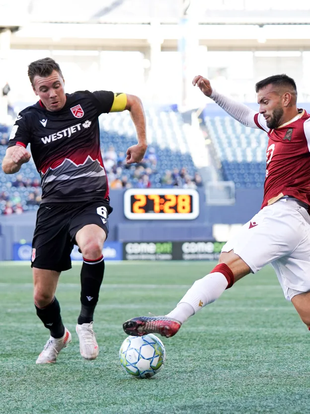 Cavalry FC and Valour FC will meet in an all-important playoff matchup Saturday in Calgary. The home side Cavs are in the hunt for a crucial home-field advantage in the already-clinched playoffs while Winnipeg is staring down an underdog story for the ages – all set to be played in an ice-cold Calgary (more on that later). Valour is coming off of potentially their biggest win in recent memory on Tuesday when Phil Dos Santos’ group thrashed HFX Wanderers FC 3-0 at IG Field. A monumental result of itself, but made bigger by the fact Winnipeg staved off elimination and came within striking distance of the fourth and final playoff spot with the win. Saturday’s match is a must-win for the Winnipeg side with two matches remaining (including away to FC Edmonton) – they’re three points back of the Wanderers on fourth place while fifth place York United sit two points ahead with a game at hand. “We understand the moment we’re in,” Dos Santos said. “We’re in a good place, the team is confident even considering the loss we had in Ottawa before Halifax.” Cavalry, meanwhile, was the first team to clinch a CPL playoff spot in 2021 following a dramatic 2-1 win over Pacific FC last week. Tommy Wheeldon Jr.’s side is in the midst of a six-match unbeaten run and are real candidates to surge ahead for the top spot in the regular season – a neat crescendo aided by an ever-healing group of players that now includes Joe Mason and Tom Field with Mason Trafford, Nik Ledgerwood, Oliver Minatel, and Ali Musse on the mend. Can Calgary continue that rise? Especially going into their final two matches of the season against their two CPL top three competitors in Pacific (at home, Sunday Nov. 7) and away to Forge FC (away, Tuesday Nov. 16)?