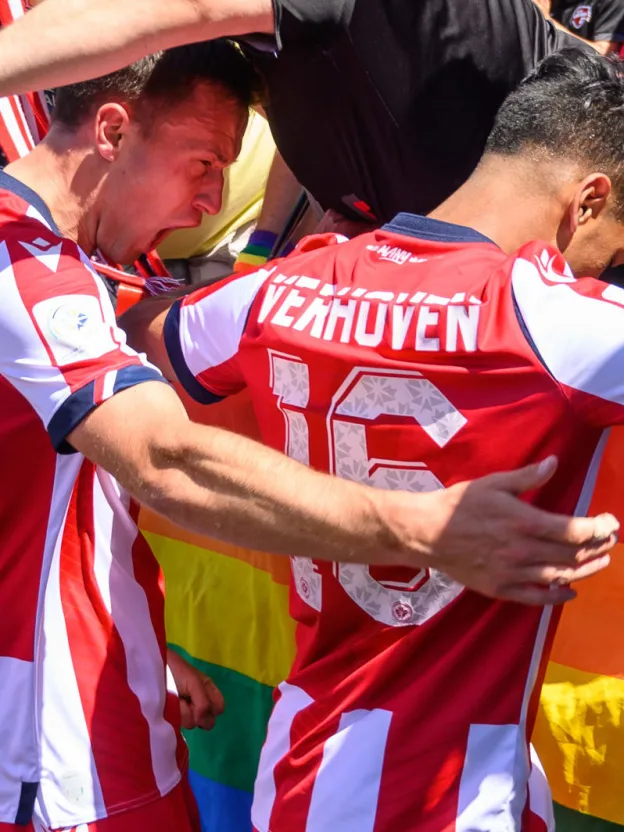 Amid the jubilation in the Atlético Ottawa locker room on Sunday, a handful of players had two reasons to celebrate. The club’s second win in June (a 2-1 triumph over Pacific FC thanks to Zach Verhoven’s late winner) didn’t just put them within a point of first place in the CPL; it also added another chunk of money to the team’s Playing for Pride campaign. This year, four Atlético Ottawa players — Chris Mannella, Carl Haworth, Ben McKendry, and Sean Melvin — are taking part in the annual Pride Month fundraiser, in support of Athlete Ally — a nonprofit organization focused on making sports more inclusive for the LGBTQI+ community. Essentially, the more success Ottawa have on the pitch in June, the more money they’ll raise; every point earned, every goal scored, and every clean sheet kept adds to the total figure participants will donate.