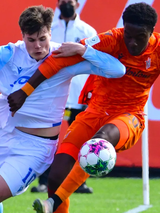 Forge FC are in the win column for the first time in 2022, as they defeated FC Edmonton 3-0 on Saturday at Tim Hortons Field thanks to a pair of goals and an assist from Terran Campbell. The visiting Eddies came in with a slightly different tactical look; local product T-boy Fayia returned to the lineup at right fullback after missing last Friday’s match with injury, and they changed to a four-man backline. Simon Triantafillou stepped into midfield for his first start with the club as well after signing for them last week ahead of the injured Shamit Shome. Forge, dealing with some injuries as well, put out a front three of Terran Campbell, Tristan Borges, and David Choinière after the latter scored a 90th-minute equalizer last weekend against Cavalry. The hosts took immediate control of the ball, trying to push into the Eddies’ half with methodical build-up play. To their credit, though, Edmonton defended well in their structure and did an excellent job of limiting Forge’s chances in the early stages. Ultimately, though, Forge found the breakthrough moment they needed. They won a corner kick just after the half-hour mark, and the ensuing scramble to clear the ball saw Triantafillou catch Garven Metusala in the face with a high boot, prompting referee David Barrie to point to the spot. Terran Campbell stepped up to take the penalty, and although his initial effort was parried by an excellent diving save from Andreas Vaikla, he was able to bury the rebound comfortably to make it 1-0 for the Hammers. On the brink of halftime, Forge doubled their lead via the right foot of Tristan Borges. David Choinière, having swapped to the left wing just minutes before, played Campbell through on goal with a clever slip pass, and Campbell spotted Borges unmarked at the back post so he sent it across for the tap-in finish. Trailing 2-0 coming out of the break, the Eddies attempted to press a little higher and generate some more attacking opportunities. Not long into the half, coach Alan Koch opted for a triple substitution, bringing Azriel González, Wesley Timoteo, and Mamadi Camara into the match to prove some fresher forwards. It nearly paid off immediately — a chipped set-piece right after the change found the boot of Camara who volleyed into the net, but the prospective goal was ruled out for offside. Soon after, Forge brought Chris Nanco into the game to give Borges some rest and provide a different element on the right wing, and it paid off quite soon. Nanco, Aboubacar Sissoko, and Alessandro Hojabrpour played off each other well on the right side of the box as Sissoko drove to the end line and sent a low cross through to the goal, and it was Campbell once again who held off the Eddies’ defenders and got a foot to the ball to make it 3-0. From that point, Forge sailed on to victory. Woobens Pacius, who came on as a substitute, missed out on a few golden chances to make it 4-0, but ultimately the score remained the same and the Hammers held onto the clean sheet.