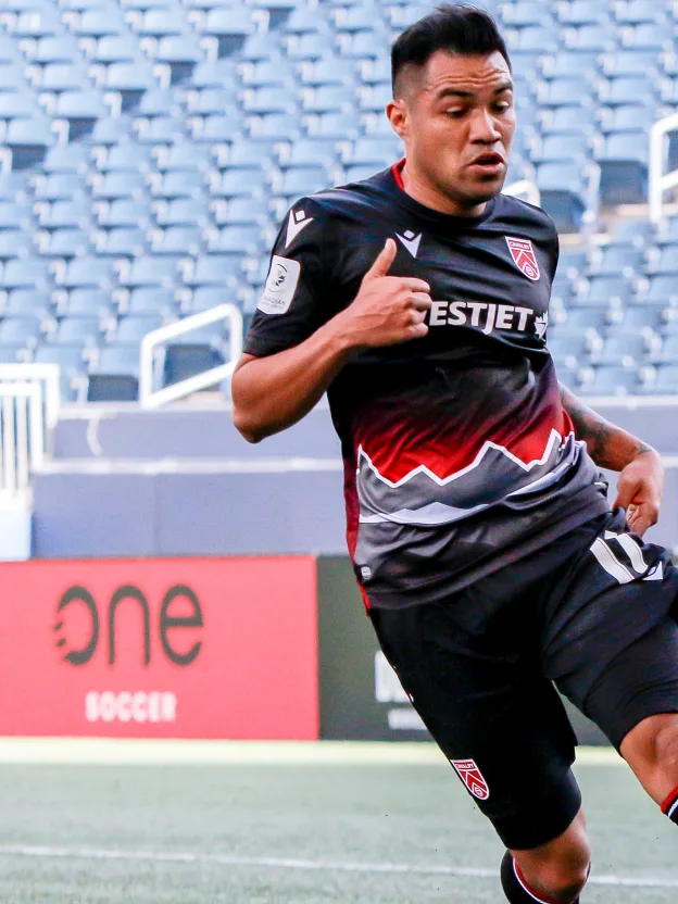 Cavalry FC opened their 2021 campaign with a bang on Sunday, seeing off York United FC 2-1 at IG Field in Winnipeg and claiming victory in the CPL’s first ComeOn! Match of the Week, thanks to goals from Sergio Camargo and José Escalante and a commendable defensive effort. York got on the board late with a stunning Diyaeddine Abzi free kick, but they couldn’t quite erase the deficit completely. Cavs gaffer Tommy Wheeldon Jr. fielded an 11 with plenty of familiar faces, but he also handed starts to former U SPORTS standouts Victor Loturi and Daniel Kaiser. José Escalante also made his much-anticipated return to the Cavs lineup after missing out on 2020 due to travel restrictions. Meanwhile, Jimmy Brennan’s York United side — playing for the first time under its new name — had plenty of youth, with the likes of Max Ferrari and Lowell Wright playing key roles in the attack, plus a smattering of club newcomers like former Cavalry defender Dominick Zator, Chrisnovic N’sa, and Noah Verhoeven filling out the new-look matchday squad. The early stages of the match were relatively cagey; both sides, playing their first matches since the Island Games last summer, took the first half hour to feel each other out. Though Cavalry had the lion’s share of possession, both sides had a handful of opportunities in the attacking third, but neither managed to truly threaten the other much — save for one Cavs chance around the 20-minute mark that saw York keeper Nathan Ingham caught up with his own defender to cause some confusion. Cavalry managed to open their account first; an inch-perfect Escalante cross, fired in from well out on the right flank, found the diving head of Sergio Camargo, who fought off York’s Michael Petrasso to nod it home and put the Cavs up 1-0. Camargo would exit the game at halftime, with Wheeldon opting to add pacey wingback Mo Farsi into the mix for a slightly more direct attacking option. Not long after the interval, Cavalry added another — York defender Roger Thompson, a little careless in moving the ball out from the back, was caught unaware by Escalante bearing down on him. Cavalry’s Honduran winger picked the ball away from Thompson and quickly fired goalward, finding the net with a deflection off Ingham. York did manage to put Cavalry on their heels for the final half hour, earning some dangerous set-piece opportunities, but they weren’t quite able to solve the well-organized Cavalry backline until the 79th minute. With free kick 10 yards outside the box, Diyaeddine Abzi stepped up to curl the dead ball around the wall and into the net by the left post. Injected with new life after the goal, York continued to press for an equalizer, but they weren’t able to break through again. The Cavs had a few dangerous chances of their own toward the end of the game, with former York stalwart Joe Di Chiara causing serious trouble in midfield, but the contest ended with a 2-1 scoreline.