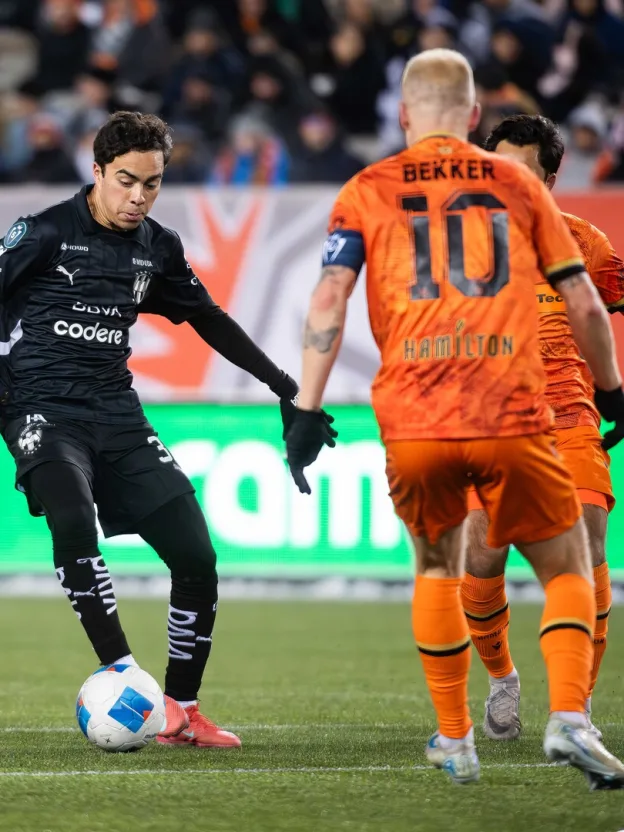 CF Monterrey braved the cold at Hamilton Stadium, and weathered a few glorious chances from hosts, on Wednesday night to emerge 2-0 victors over Forge FC in the first leg of their Concacaf Champions Cup first round matchup. Nelson Deossa opened the scoring for Monterrey in the 53rd minute, before a brilliant free kick from Jordi Cortizo doubled their advantage in the 66th. CF Monterrey’s starting lineup featured just three starters from Saturday’s league match against Necaxa, including goalscorer Fidel Ambriz. Forge, meanwhile, featured five players in their starting lineup who were not with the club last season, including three in the backline: defenders Rezart Rama, Marko Jevremović and Dan Nimick, as well as attackers Mo Babouli and Brian Wright. The frosty conditions in Hamilton were instantly evident, as both sides struggled to find their footing in the match, quite literally, as the slippery turf took some adjustment causing several slides and spills. Forge created a couple of good opportunities through the first 15 minutes down the right flank, Brian Wright and then David Choinière were played in behind but neither of them could get their balls across the box quite right. CF Monterrey came within inches of opening the scoring in the 27th minute, as Roberto de la Rosa latched onto a deflected ball in the final third and sent his shot skimming just wide of the left post. Forge came even closer two minutes later, as a brilliant run from Rezart Rama saw him break into the box. He poked the ball across the six-yard box, but Brian Wright could not sort his feet out with the net gaping. They broke through again moments later, but the play was ruled offside. The two sides traded a few more half chances, including a de la Rosa header that drifted narrowly wide of Jassem Koleilat’s net just before half-time. However, an entertaining opening 45 minutes remained scoreless as the two sides retreated out of the cold and into their respective dressing rooms. Monterrey seemed to adjust to the conditions better in the second half, and came out playing shorter passes and starting to control the tempo of the match. In the 53rd minute, a beautiful flick and pass from Óliver Torres found de la Rosa on the edge of the box. The Monterrey striker laid the ball off for Deossa, whose curling strike picked out the top right of the net. It was a clear display of the class of the Liga MX club. That quality was demonstrated again in the 66th minute, as minutes after stepping onto the pitch, substitute Cortizo sent a stunning free kick off of the post and into the back of the net. The moment seemed to deflate Forge a bit, who couldn’t seem to break out of their own half with a hungry Monterrey team pressing for more. They broke through again in the 69th minute, forcing a great save from Koleilat. Looking to get something out of the game late, Forge brought on Noah Jensen, as well as CPL-USPORTS pick Maxime Filion for his professional debut in the 75th minute. Moments later, Tristan Borges cut in and curled in a dangerous shot which forced a good save from Luis Cardenas. Forge had an incredible chance to get on the board in the 83rd minute, as a ball across the box from Alessandro Hojabrpour was deflected over an open net by Alex Achinioti-Jönsson from close range. Ben Paton then made his Forge debut in the 83rd minute. The hosts kept pressing, with Tristan Borges, who had shifted out wide once Choinière was removed, playing several dangerous balls into the box. But none of them could find their target. With the away goals rule in effect, Forge now head down to Estadio BBVA on Tuesday with the monumental task of needing to overcome a two-goal deficit.