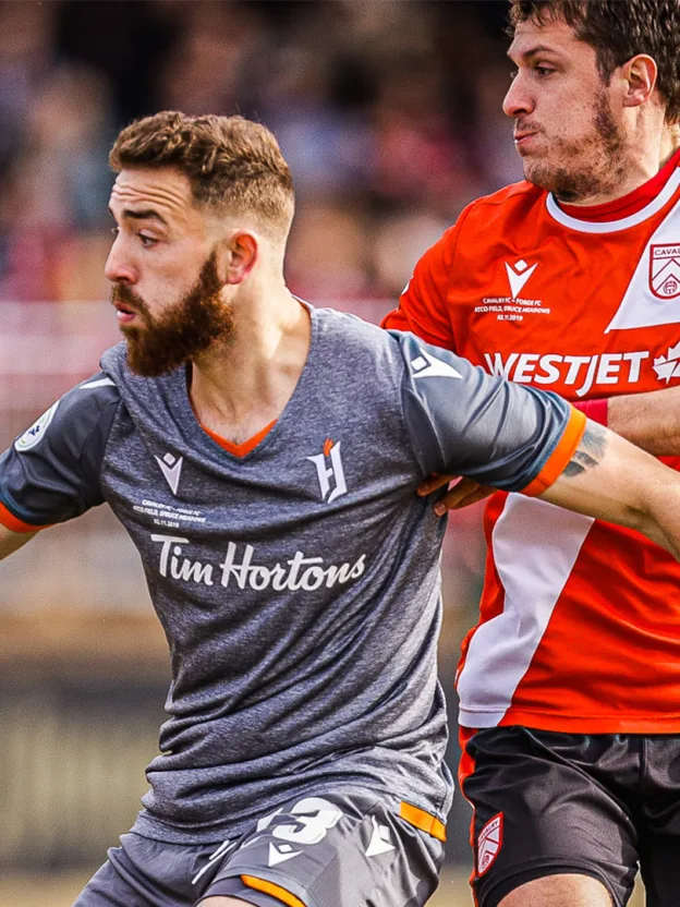 Forge FC, 2019 Canadian Premier League champions. The Hamilton outfit clawed their way to lifting the North Star Shield for the first time on Saturday, as they downed Cavalry FC 1-0 at ATCO Field, Spruce Meadows, which added insurance to the 1-0 lead they earned a week prior at Tim Hortons Field. A late goal was the cherry on top for Forge, who took Finals 2019 2-0 on aggregate. Holding on to bring the first professional championship to Hamilton since the Tiger-Cats’ 1999 Grey Cup and the Hamilton Bulldogs’ 2007 Calder Cup, Forge withstood a hostile atmosphere and an unrelenting adversary en route to one of the most intense matches the CPL has seen. The first half sailed past quietly, with neither side establishing much of an advantage. As one might’ve expected, Cavalry took the front foot in search of multiple goals, spending almost a third of the first frame in Forge’s own third of the pitch. The Cavs owned the possession battle with 57.5 percent, flipping the script from the previous weekend and sending dangerous attacks down the right flank. The physical tone that’s defined many of these sides’ meetings (especially Leg 1) persisted, with neither team holding back in tackles — things began to heat up with Nico Pasquotti’s 18th-minute slide through the back of Daniel Krutzen well after the play, earning the Cavalry winger a yellow card. Neither team managed to alter Forge’s 1-0 aggregate lead in the first 45; the Cavs sent some tantalizing balls over the top of the visitors’ defence, but they failed to properly test Triston Henry in goal. Dominique Malonga had a pair of golden chances, with a 13th-minute header just sailing over the bar, and 52nd-minute header bouncing off the ground and over after a marvelous overlap on the wing from Dominick Zator. Corner after corner, cross after cross, Cavalry sent waves of attacks at Forge in the second half, looking to break through in front of the Foot Soldiers in the supporters’ stand. It seemed that every time, though, either one of Forge’s defenders or Henry himself were there to turn the home side away. Tommy Wheeldon Jr. injected some more vigor into his Cavalry side in the second half, introducing Jose Escalante and Oliver Minatel. Escalante, who’s become quite the villain in the eyes of Forge fans this season, nearly struck another blow to the Hammers with his first kick of the ball, but his 69th-minute free kick whistled past the right goalpost. The second half wore on and the Cavs, conquerors of Spring and Fall campaigns, found a new level of urgency. With Forge increasingly pinned back as the Calgary altitude made their legs heavier than normal, Cavalry threw a full season’s worth of pressure at their rival’s net. Spurred on by a raucous sea of red in Calgary, the Cavs put their foes through one last 90 minutes of hell, as they’ve done all year. The Hammers would not yield, though. They held firm through Cavalry’s 14 shots, and they secured just the third ever clean sheet for a visiting CPL team at ATCO Field. Indeed, it was to be Forge who found the net. With all of Cavalry’s outfield players pushed into the box deep into stoppage time, a ball skipped out to Elimane Cissé behind the Cavs’ last line, deep in his own half. He and David Choinière embarked on a long 2-on-0 spring downfield, and it was Choinière who finished to seal the first-ever CPL championship. The result also secured a piece of individual hardware for Tristan Borges, whose 13 goals on the season earned him the league’s first Golden Boot. His long-range screamer in Leg 1 stood as the only goal of Finals 2019, but what a goal it was. With the win, Forge have also ensured that continental soccer will return to the Golden Horseshoe in 2020. As CPL champions, they’ll get to make another foray into the CONCACAF League, after a successful run this season that saw them bounced in the quarter-finals by C.D. Olimpia. And so, the book closes on the inaugural Canadian Premier League season. Forge FC, Forever First, will now go down in history as the first team to lift the North Star Shield.