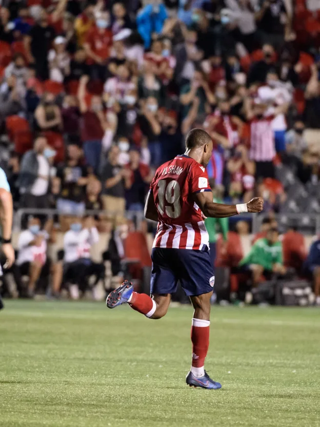 Malcolm Shaw was the hero for Atlético Ottawa on Wednesday night, scoring an 82nd-minute goal to tie the match at 2-2 and earn his side a point against York United. The start of the match was evenly contested, with Brian Wright forcing a save from Nathan Ingham the best early chance. With his side’s first shot on target, Michael Petrasso gave York United the lead in the 18th minute. After a long ball down the pitch was chased down by Nicholas Hamilton, the Jamaican brilliantly passed it back to Max Ferrari with a backheel effort. Ferrari took a touch to his left to open up room for him to cross the ball before curling a driven cross into the six-yard box. Petrasso made a perfectly-timed run through the Ottawa defence, getting his foot to the ball before a diving Teodor Obadal, giving The Nine Stripes the lead. Both defences looked sharp in the opening 45 minutes, especially York’s — who allowed just three shots, and only one on goal, in the first half. Just five minutes after the break, however, the home side tied it up at 1-1. After a perfect through ball from Alberto Soto found the feet of Miguel Acosta, Ottawa’s left back tried to play a low pass across the box, but York centre-back Dominick Zator got his foot in front of it to block it. Acosta followed the ball into the box and blocked an attempted clearance by Zator before firing the ball into the back of the net. The deadlock would last just 10 minutes, as the visitors took the lead again at the hour mark. Noah Verhoeven, after receiving the ball near the halfway line, took a moment to scan the field in front of him before lifting a long pass over the Ottawa backline. It took a couple of bounces before Alvaro Rivero caught up to it, and lobbed it over the head of Teodor Obadal, who was caught off his line. He didn’t fully commit to coming out to get the ball, or staying in his goal, allowing Rivero a chance to lift a shot over him. It seemed as though York were set to pick up the first-ever win in this fixture — as the past two meetings also finished in a draw — Malcolm Shaw rescued the home side. In a crowded penalty area, moments after a corner kick, a Chris Mannella shot fell to the feet of Shaw, who held off a defender before turning and firing home the tying goal. With the draw, Atlético Ottawa move one point closer to climbing off the bottom of the table. They are now one point back of HFX Wanderers for 7th, while York are now just four back of Valour for the fourth and final playoff spot.