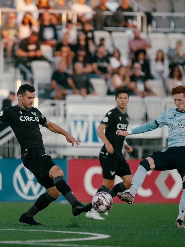 Vancouver FC picked up their first-ever result against Atlético Ottawa on Saturday, as they picked up a crucial 2-1 win at Langley’s Willoughby Community Park thanks to a late James Cameron winner. Thanks to that, they also kept their playoff hopes alive for at least another week, too climbing to within 12 points of the line with five games to go. As for Ottawa, they dropped down into a tie for fifth place, narrowly staying in a playoff spot for the time ebeing on goal difference. To begin the game, Ottawa’s Zach Verhoven had an early sight at goal in the 3rd minute, flashing a dangerous half-volley from well outside of the box, sending it just wide of the mark with his attempt. At the other end, however, Vancouver would do well to fashion up some danger of their own in the 6th minute, as they found the game’s opening goal on just their first attack. After a great through ball from Gabriel Bitar, Mikaël Cantave did well to separate himself from the defenders and slot the ball into the bottom right corner, giving his team the early lead with a composed finish. Yet, that lead wouldn’t last long, as Ottawa would then level the score in the 18th minute. It’d come nearly out of nothing, too – on a routine possession sequence, Vancouver’s goalkeeper, Callum Irving, slipped on the ball, creating an unforced turnover. From there, the ball would fall to Ollie Bassett, and Ottawa’s talisman would make no mistake, slotting home into an empty net for his league-leading 11th goal of the CPL campaign. Then, building off of the momentum of that goal, Ottawa nearly grabbed the lead in the 26th minute. After a nice bit of trickery from Rubén del Campo, he’d unleash a powerful shot from the edge of the box, only finding himself denied by the crossbar on the attempt. Eager to regain the lead, Vancouver would have a good look at goal in the 38th minute, as Kadin Chung managed to open up space for a shot with a nice move, but his attempt would be easily saved by Nathan Ingham in the Ottawa goal. From there, however, other than a pair of half-chances from Ottawa’s Carl Haworth that didn’t end up threatening the goal, the game would reach half time still tied at one. On the other side of the break, Vancouver would come out strongly, as they continued their search for another goal. As a result, Bitar would flash a dangerous shot towards goal in the 50th minute, sending his shot just wide of the target from distance. Then, in the 55th minute, James Cameron had a look from distance on his left foot on the second phase of a corner, but his shot would sail over the goal. Having done well to absorb the Vancouver attacks, Ottawa tried to push back with some pressure of their own. Because of that, they’d nearly score in the 61st minute, as the ball fell to del Campo inside of the box, but his attempt would trickle just wide of the post after a deflection. Shortly after, Ilias Iliadis would attempt a half-volley from the edge of the box in the 69th minute, but his shot would also sail just past the post. Not wanting to let Ottawa take over the game, Vancouver did well to respond with the best chance of the half, as Bitar managed to get on the end of a perfect Alejandro Díaz flick, but despite beating his man and creating a wide-open shot inside of the box, he’d slash his shot wide of the mark. Continuing the end-to-end action, Iliadis nearly put Ottawa in the lead with a good shot in the box in the 74th minute, but his shot would be nicely saved by Irving. Then, from there, a chaotic minute of play would ensue. First, at one end, Vancouver though they found their winner in the 76th minute, as Shaan Hundal found the net after a nice counter-attack, but his goal would be disallowed for an offside. Then, at the other end, Jean-Aniel Assi did well to unleash a strong shot from a good area, forcing Irving to palm his shot over for a corner. Doing well to keep up a busy half of action, Iliadis would continue to chase his goal. To his credit, he’d come closest to doing so in the 85th minute, as he had a good look from inside of the box, but his shot would be denied by the strong palms of Irving. Yet, despite all of the attempts, the game seemed destined to finish as a draw as it reached the 90th minute. From there, however, is where Vancouver would find a moment of magic. After a nice run from Hundal, he’d force a rebound on a dangerous shot at Ingham, and the ball would fall right to a wide-open James Cameron. Faced with an open net, the 18-year-old would make no mistake with the finish, slotting home his first professional goal to give his team a late lead. They wouldn’t be content with just that goal, either – Renan Garcia nearly made it three not long after, as he caught all of a free kick from just outside of the box, one that nearly trickled through Ingham’s hands, going out for a corner. Then, soon after, the referee would blow his final whistle, allowing Vancouver to claim all three points on the day.