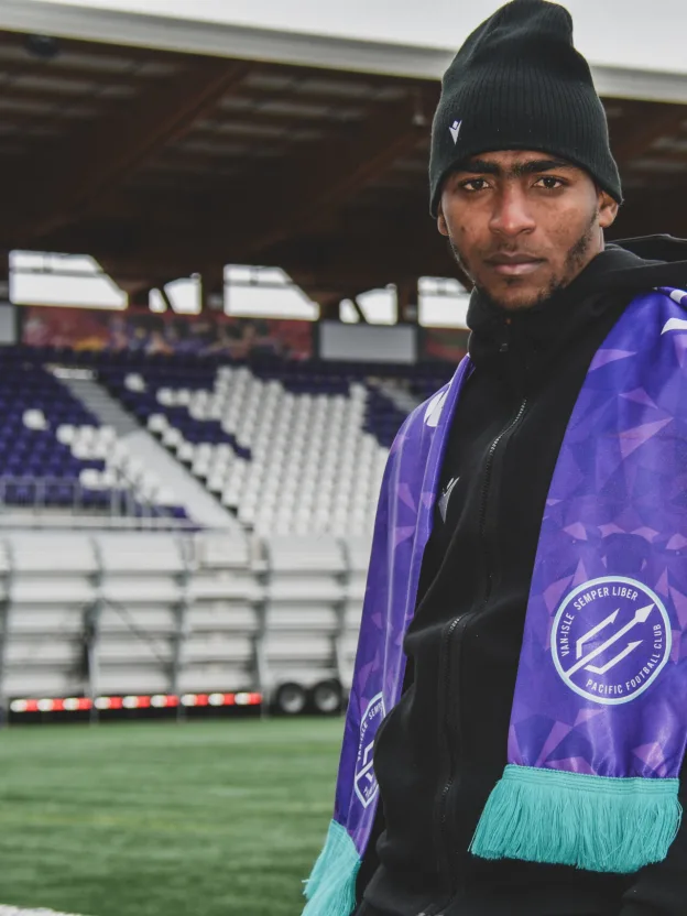 “He’s consistently scored goals in Trinidad,” said Pacific FC head coach James Merriman. “He’s showing that he can step up. He’s really, really humble, he’s a great character, a great personality, he’s ambitious, he still has big goals for himself because he’s always been in the military as well in Trinidad, so he’s got a really unique story. Football is his love, and what he has started to have success with. I think now he’s going to focus on that and see what he can do with football. I think we are getting him at a perfect time to come to our club.” As Merriman alluded to, Reon Moore’s historic club in Trinidad, Defence Force, is composed of members of the country’s army and coast guard, in which Moore served. While at times those commitments took him away from fully focusing on his football, he believes they have been critical to forming his character. “The military, the mindset is good for me, and also I can help carry that to the team, so we can be more focused on the task at hand this season,” said Moore. On the pitch, Merriman says Moore is different from all of the other strikers Pacific have had. What he particularly likes is the way Moore combines a tireless work rate with a demonstrated ability to score goals. When asked about what attributes he will bring to the Island in 2024, Moore is slightly more coy. “I think my strength is working strictly and strongly for the team, in any way possible,” said Moore, before adding with a laugh, “but I don’t want to give out too much information right now so that the opponents won’t be able to study.” The striker position was a key off-season need for Pacific FC, who said goodbye to Djenairo Daniels and Easton Ongaro in January. Despite scoring the second most goals in the league this past season, 42 in total, the club felt not enough of those came from the men leading the line. Those goals also dried up significantly during a tempestuous second half of the season, with Pacific scoring just 20 times in their final 17 matches of 2023, including the playoffs. Daniels and Ongaro combined for just three goals during that stretch. “There were some difficult decisions, difficult conversations obviously,” said Merriman, “but we felt that we were consistently getting into the spaces that we needed to get into, we created the most chances in the league and at the beginning of the season we were scoring but we were scoring by committee, and everyone was chipping in. We never really had one or two players step up and hit that 10-15 goals mark which that’s what we were looking for in terms of a striker.”