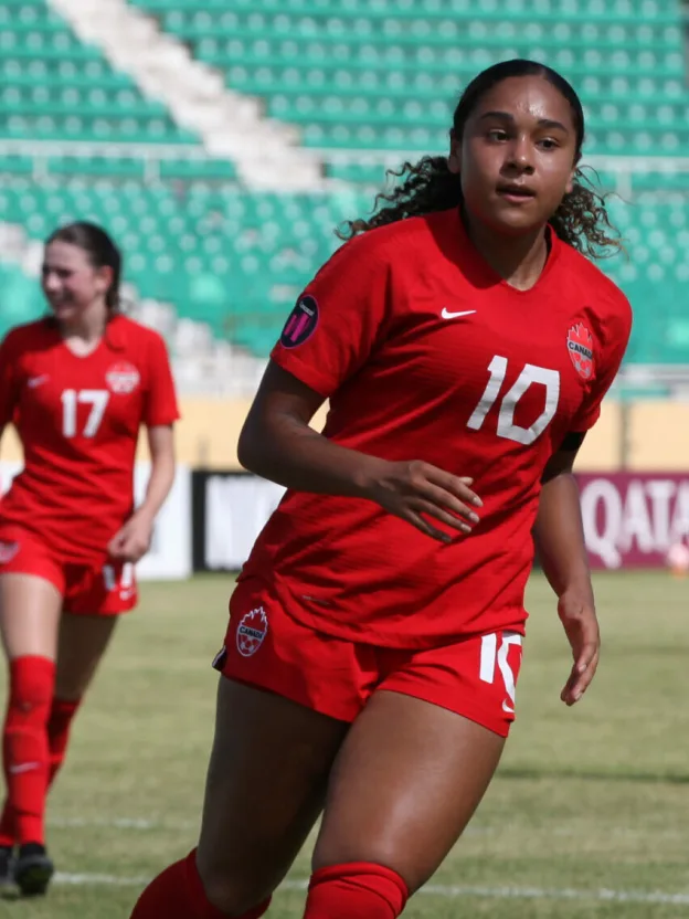 A lethal finisher with the ability to play up top, on the wing, or in an attacking midfield role, Smith’s versatility and impressive track record thus far are things that caught the eye of clubs. Smith has scored at almost a goal per game rate with the Canadian youth national teams — including 12 in eight games in 2023 — and scored 18 goals in 11 League1 Ontario matches with the North Toronto Nitros last year. “I play everywhere up top,” Smith said. “I think on the wing it really depends on the game and what the coaches want. For me. I like to play to take players on one-vs-one and isolate them, or I do like playing as a false nine and receiving the ball in the middle to create opportunities.” Smith has already made her senior national debut — breaking the record for the youngest player in Canadian women’s national team history as a 15-year-old at a friendly tournament in China in November 2019. Later named Canada Soccer’s 2019 Young Player of the Year, she made her debut against Brazil and one of her heroes growing up, Marta, while playing alongside another in Christine Sinclair, and played a second match in that tournament against New Zealand. With her move now into the professional game, Smith wants to get back into the senior national team for the first time since then. “Honestly, it’s been a tough couple of years,” Smith admitted. “I’ve been getting down on myself just because I know what I have to do to get there, and it’s just a matter of executing it. It’s a big goal of mine within the next year or two, and I’ve been working really hard towards that and I’m making these subtle moves to get there. I’m really excited for this next year.” “Completely different, the mentality is different, physically different,” Smith listed when asked what makes 2023 Olivia Smith different from 2019 Olivia Smith. “Also in terms of skill, training a lot, technically but also awareness. I’ve also grown a lot as a person, I feel like now taking upon this new role of leadership with the U-20 group also adds to what I have to bring by 2023 and 2024.” In late May and early June, the 18-year-old was a key player for the Canadian under-20s at the 2023 Concacaf Women’s U-20 Championship in the Dominican Republic, scoring four goals in five games as Canada finished third place and qualified for next year’s U-20 Women’s World Cup — including a 75th-minute goal in the third place match to send the match to extra time, where Canada would win 5-3. Smith says that this year, as one of the co-captains of the team, she had to use her voice more as a leader, and develop more as a player and as a person. “I think a massive takeaway for me was that this is a new group for me,” Smith said. “Last year, I was kind of like the baby of the team, and this year, I kind of became a leader. It was a big role to take upon but I’m really confident in our team going into World Cup next year. I feel like we did really well as a collective and we still have a lot of room to grow, but we still have a year until World Cup, so looking forward to it. “Last year, I was definitely a lot more quiet and kept to myself, but this year, I feel like me and my co-captain Florianne Jourde, were able to bring our team together, and played a really big role in terms of confidence on the field and bringing confidence to our teammates.”