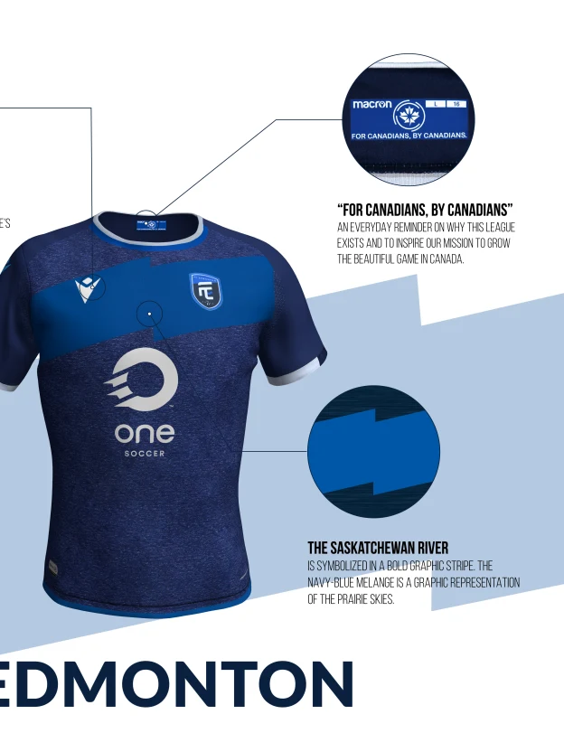 Through the seven seasons FC Edmonton played in the NASL, you could argue the team never had a true home kit. Oh, sure, the team always had a white “road” kit, and either a dark blue or black kit that was supposed to be the home jersey. But, year after year, the team wore the white kit at home almost as much as it went with the blue or black. Clarke Field, on a summer Sunday afternoon, can become sweltering, much like Commonwealth Stadium did for some Women’s World Cup scorchers back in 2015. And, well, dark jerseys weren’t the best for the sun. But that won’t be the case this season, said FC Edmonton coach Jeff Paulus. Macron unveiled a new home blue kit and a road white shirt that stays true to the Eddies’ traditional colours.