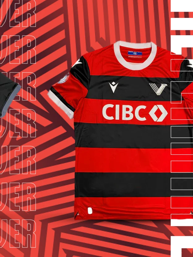 Vancouver FC has unveiled its first-ever primary and alternate kits ahead of their inaugural Canadian Premier League season. The kits were officially unveiled on Saturday, March 25 during a community match against FC Tigers Vancouver, hosted by Fusion Football Club, and are on sale now, ahead of Vancouver’s first Canadian Premier League (CPL) match on Saturday, April 15, a battle of British Columbia that will see VFC visit West Coast rival Pacific FC at Starlight Stadium in Langford, B.C. The squad is scheduled to kick off its home schedule at Willoughby Community Park at the Langley Events Centre on Sunday, May 7 against Cavalry FC. The newcomers to the Canadian Premier League arrive in style with a pair of eye-catching kits that are already receiving rave reviews from fans on the Lower Mainland for their bold designs and clever tributes to both the local and national soccer scenes. The kit features front of jersey sponsor CIBC, which was announced last November as part of the organization’s sponsorship agreement with the CPL and Canada Soccer. Carlsberg, which joined the League as a partner in October 2022, is represented as VFC’s sleeve sponsor.