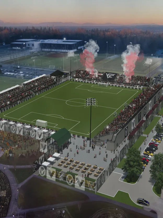 Langley, BC – (February 9, 2023) – Vancouver FC today revealed the first rendering of its new stadium ahead of the launch of ticket sales for the club’s inaugural season in the coming weeks.