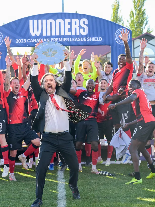 Cavalry FC were presented with the Canadian Premier League Shield on Saturday at ATCO Field, shortly after their 3-0 victory over Pacific FC. The Calgary-based club finished with 55 points in 2023 en route to capturing the regular season championship. Sharing the moment with a litany of fans who joined them on the pitch, the Cavs celebrated their triumph in style and became the first club to lift this latest piece of CPL silverware. Footage courtesy of OneSoccer.