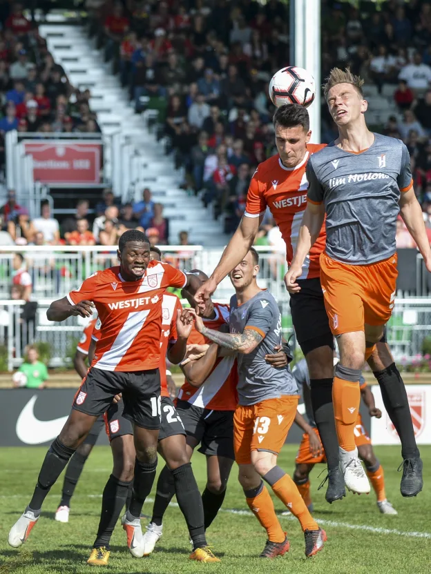 When two sides meet as regularly as Cavalry FC and Forge FC did in the inaugural CPL season, it’s incredibly difficult for coaches to find anything new with which to surprise the opponent. By this stage, Cavalry and Forge have shapeshifted their formations in open play more times than a comic book villain. And, well, of course they could. Cavalry and Forge – with the strong foundation of pre-existing rosters moulded under their current coaches as either Calgary Foothills in PDL competition or Sigma FC in League1 Ontario – arrived for the 2019 CPL season as the two most tactically flexible sides, clear in their identity, and largely far more the finished article than their competitors. The layer of polish on both teams meant that one week they could steamroll an opponent with a well-honed system of play, and another week completely overhaul their approach to match up better with another opponent. And they could do all of this with players in changed roles or positions, and without fear of disrupting on-field chemistry by being too reactionary. Such is the benefit of having history: Tommy Wheeldon Jr. and Bobby Smyrniotis have been carving out and shaping the character, philosophy, and principles of play in their two sides for many years. The thing is that when two big sides are as familiar with their opposition as Cavalry and Forge, the traditional four moments of play can be reduced to a series of pre-set pantomime: attack phases are nullified by defensive phases custom-armoured against specific points of vulnerability; movements in transition are by design directed towards well-established zones. Ahead of the two-legged Canadian Premier League Finals, you can bet that all the tactical angles have been weighed and dissected to death by in-house video analysts and technical staff. It’s going to take something special for these two teams to find a viable breakthrough.