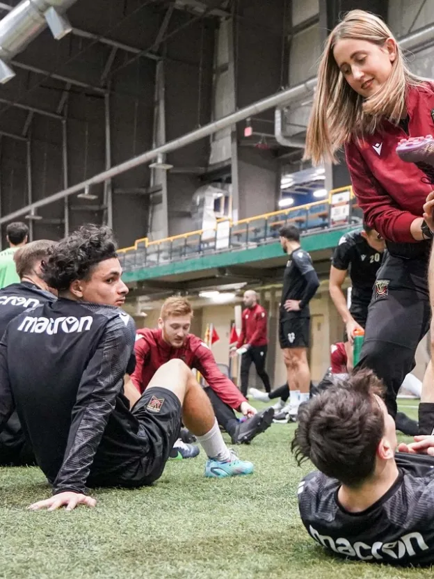 “We’re there from the moment you injure yourself to when you’re ready to return back to play … you build connections with these players,” Gagné explained. “They basically put their trust and injuries in your hands, which makes an impact especially when they go back on the field at one hundred percent.” Gagné’s decision to apply to work with Valour, where she spends her days taping muscles, performing treatments and setting up the therapy room, came on a whim. She was still a student when she saw the job posting for a head athletic therapist role with the club, and decided to go for it. “I always joked that I was going to make it into pro soccer because that was my dream … I messaged my [now] boss and gave him my resume and reference letters,” she said. Gagné ultimately joined the club as an assistant athletic therapist, proving that passion, confidence and putting yourself out there can go a long way. “It’s really hard, especially when you want to get a job in an environment that’s been dominated by male therapists … But don’t be afraid to shoot your shot and go for what you want,” said Gagné. “I wouldn’t have gotten this job with Valour if I didn’t decide to send that email with my resume.”
