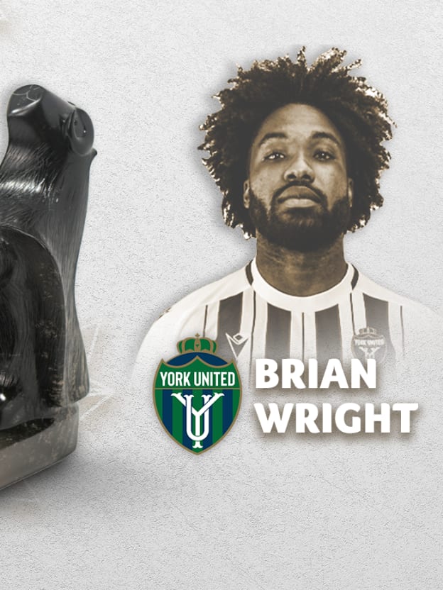 Brian Wright of York United has been named the 2024 Canadian Premier League Players’ Player of the Year, the league revealed on Thursday. Voting for the award took place in early October and a total of 192 CPL players submitted their top three players, with five points awarded to their number one choice, three points for their second selection and one point for whomever they picked third. Any player who played in the league in 2024 was eligible to vote and be included for consideration by the players. Players were not allowed to vote for anyone on their own team, and voting took place strictly based on how the players performed in the Canadian Premier League regular season. In total, 46 players received votes during a process that saw players meet face-to-face with members of the Canadian Premier League office to give their choices. The results of the vote were revealed during Thursday evening’s 2024 CPL awards show in Calgary. The Players’ Player of the Year is awarded the Muskox, a sculpture carved by Inuit artist Ruben Komangapik. The Muskox represents leadership, organization and defence of its most vulnerable members. Wright finished with 290 points and was named on 92 of 192 ballots (48 per cent), receiving 30 first-place votes. He was not eligible to be named on 24 of them submitted by players from his own club. Wright received the most points (69) from Cavalry FC players, being named on 23 ballots with seven first-place votes. Forge FC players named him on 19 of their ballots and Atlético Ottawa on 13 ballots. Finishing second was Forge FC midfielder Tristan Borges with 180 points, named on 52 ballots with 24 first-place votes. Borges received the most points from Pacific FC players (43), being named on 11 ballots with six first-place votes. Halifax Wanderers’ players named him on nine of their ballots and York United players voted for him on eight ballots. Borges’ teammate in Hamilton, playmaker Beni Badibanga, finished third with 169 points, named on 49 ballots with 22 first-place votes. Badibanga received the most points from Vancouver FC players (65), being named on 17 ballots with ten first-place votes. Players from Cavalry FC named him on 14 ballots and York United named him on eight ballots. Cavalry FC defender, Daan Klomp, finished fourth with 164 points, named on 52 ballots with 20 first-place votes. Klomp received the most points from Valour FC players (42), being named on 12 ballots with five first-place votes. Vancouver FC players named him on 12 ballots and Forge FC players named him on nine ballots. Golden Boot winner Tobias Warschewski, of Cavalry FC, finished fifth with 159 points, named on 39 ballots with 25 first-place votes. The German received the most points from Halifax Wanderers’ players (87), being named on 19 ballots with 15 first-place votes. Forge FC skipper Kyle Bekker, runner-up in this award in 2023, finished sixth with 133 points, named on a total of 41 ballots with 17 first-place votes. Ruben del Campo, striker for Atlético Ottawa, finished seventh with 101 points, named on a total of 39 ballots with nine first-place votes. Last year’s winner, Ali Musse, of Cavalry FC, finished eighth with 94 points, named on a total of 34 ballots with seven first-place votes. Musse was only able to play 16 of 28 league games in 2024 due to injury. Forge FC midfielder Alessandro Hojabrpour finished ninth with 73 points, named on a total of 29 ballots with seven first place votes. Rounding out the top ten was Halifax Wanderers midfielder Lorenzo Callegari with 44 points, named on a total of 14 ballots with six first place votes. The full top 20 is as follows: 1. Brian Wright (York United) 290 points