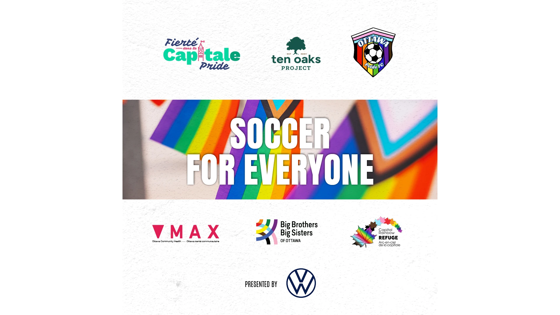Soccer For Everyone celebrates diversity and inclusivity throughout the Beautiful Game. On Sunday you can meet organizations such as Capital Pride, Capital Rainbow Refuge, MAX Ottawa, Ten Oaks Project, Big Brothers and Big Sisters of Ottawa as well as newly formed community soccer group – Ottawa Pride FC.
