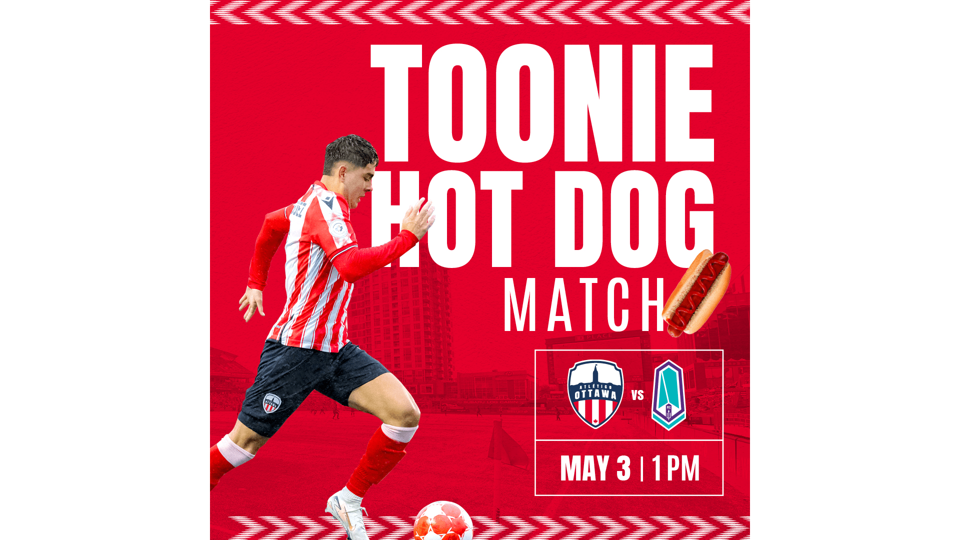 This is the Match Day Guide, delivered by Gabriel Pizza. All the info you need to know about our match this Saturday at 1pm at TD Place. We play Pacifc FC. It's our annual Toonie Hot Dog Match featuring the legendary Wiener Dog Race at halftime. GET TICKETS