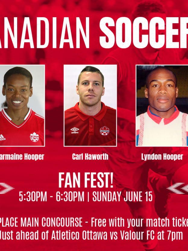 As part of the festivities, Atleti is proud to share a Fan Fest that kicks off with a special gate time. 5:30pm we swing open the gates. HERE is what to expect at Fan Fest but the star of the show will be this trio of Canadian Icons joining us. From 5:30p to 6:30p come and say hello and get an autograph from Charmaine Hooper, Lyndon Hooper and Carl Haworth. Each athlete has made their mark on the global stage and right here in Ottawa. Read more below!