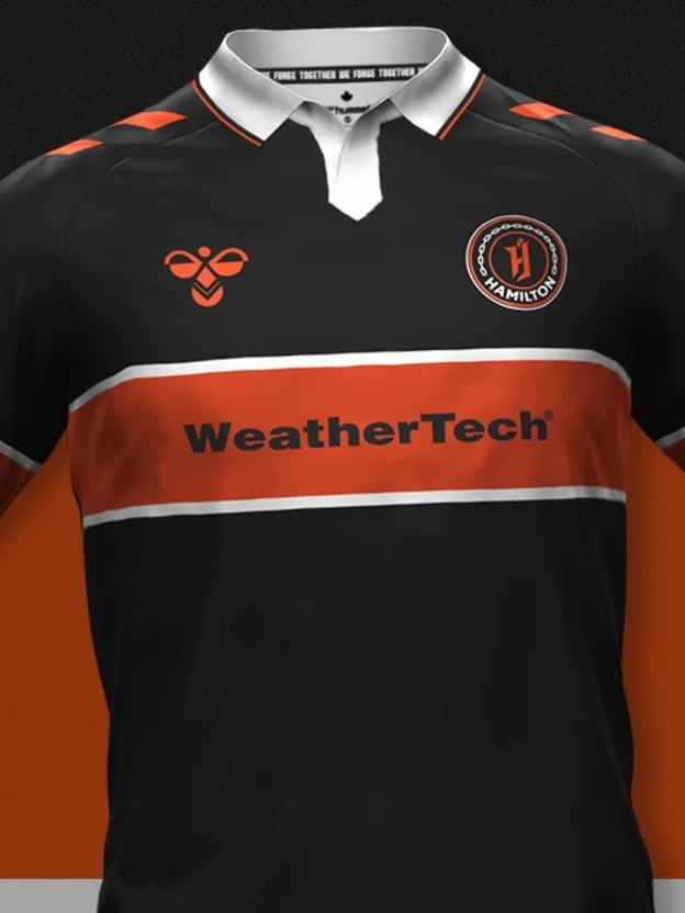 The bold orange chest band pays tribute to the Hamilton Steelers and the city’s rich soccer history, blending modern design with a nod to the Steel City’s sporting legacy.