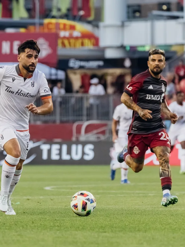 As the final whistle blew, the Canadian National Exhibition –surrounding BMO Field like a light show- was still in full swing, but for Forge FC, this particular ride was over. A goal by Italian Lorenzo Insigne –the second highest-paid player in all of North American soccer after Lionel Messi—early in the second half gave Toronto FC a 1-0 win over Forge Tuesday night, earning the MLS side a berth in the Canadian Championship final against league-mates Vancouver Whitecaps. After Hamilton had won the first game 2-1 at Tim Hortons Field more than six weeks ago, Tuesday’s result left the two-leg national tournament semifinal tied at 2-2 on aggregate. But TFC advanced because of the scrambly away goal (Prince Owusu) they scored last month just before regulation time expired. The Hammers couldn’t match that away goal last night and had very few chances to do so, as the Reds came out pressing as expected, kept the ball in their control most of the way, and didn’t let the Forge gather any sustainable pace. Still, the Forge had a couple of chances, a diving header by striker Jordan Hamilton off a lovely feed from Béni Badibanga which just missed, and a chance by Nana Ampomah. But the majority of the drive in this game was generated by the home side which played with more finesse and determination than they did in Hamilton, taking 19 shots to just four for the visitors. Seven were on target, while Forge had only one on target. “We were just a little bit flat,” said Forge captain Kyle Bekker. “I think from the first minute you could see we didn’t have our best stuff. We found it a little more difficult to get into a rhythm building up, compared to other games, and that’s what opened things up for us a lot. “Credit them; they pressed us, but I think there were still opportunities for us and some moments in that little half-space. In the first half, you saw that Béni found one for Jordan. We made that happen. It was about finding a rhythm and we didn’t have it today. “For the most part, I think we defended very well but I think there was a little bit too much of a willingness to sit back and try and absorb pressure, versus when we are building up well, we get on the attack, we push them back and we kind of impose ourselves on the game. “I think we’ll feel a little bit hard done by in the days to come but it is what it is …. A learning experience.” TFC’s Federico Bernardeschi, who was muffled and frustrated in the opening leg, upped his game and had his footprints all over this one, crisscrossing the field from the left side and creating numerous threats with his speed and creativity. Bernadeschi was Toronto’s best and, perhaps paradoxically, Hamilton’s best was the man who was marking him, right back Malcolm Duncan, who seems to improve every game. “He’s playing against a world-class player, he was excellent,” Smyrniotis said. While TFC had control of the first half, the Hammers came out of the opening 45 minutes with a 0-0 draw and were one-half of football away from advancing to the national final. But they were visibly tired in that half and could not mount enough threatening penetration or continued meaningful possession. The Hammers were playing their fifth game in 18 days and had another key match Friday night against visiting Pacific FC, with important CPL-standing points on the line. “I thought our first half was good,” Smyrniotis said. “As we planned it; we knew they were going to be very aggressive in the way they wanted to go about things and we were able to block a lot of that off. “They’ve got some quality players in the final third and guys like Richie Laryea make the difference. We created some moments but weren’t sharp in the final third, uncharacteristically. We’re usually better in those situations.” TFC had Laryea and Jonathan Osorio, both national team members, for this game, which fortified their attack and created a different moving-forward scenario for TFC which fired its president Bill Manning, the morning after Toronto’s long losing streak was extended in Hamilton. Since then, they’ve been trending upward both in the standings and in self-belief. “A hundred percent,” Bekker, who started his pro career at TFC, said when asked if that pair made a difference. “They add a lot of quality. Two guys who’ve played in a World Cup, two guys who’ve been brilliant for them. They add a lot more to what they do in their attack and they add a bit more quality to their game in general. “That being said, I think there were some moments we could have done better and I think we kind of let ourselves down a bit when we were on the ball, which allowed them to press higher and higher and keep us out of the game…but it was still a hard-fought 90 minutes and we only lost 1-0 and 2-2 on aggregate. It is what it is.” What it is, Smyrniotis said, was move on to the next game, concentrate on piling up CPL points to win either the regular season or playoff championship, or both, and earn their way into next year’s Concacaf Champions Cup that way. The winner of the TFC and the Whitecaps also gets a Cup berth. It was suggested that the transfer of Kwasi Poku to Belgium’s RWD Molenbeek for a record fee last week affected the Forge attack, and it was evident that they didn’t stretch the field the way they could, but Smyrniotis pointed out that they’ve won twice and tied once since he left the team, adding “He’s a quality player but we have a lot of quality players, who can do the business.” Bernardeschi set up the series-deciding goal after taking a short pass from the top of the box and sending a cross to the streaking Insigne on the left wing. He was wide open and volleyed the ball into the net, then sprinted toward the stands and cupped his ears to encourage TFC fans to cheer louder. “Obviously, they have good players so they’re going to come inside and get their 10 chances a game, that’s what happens 