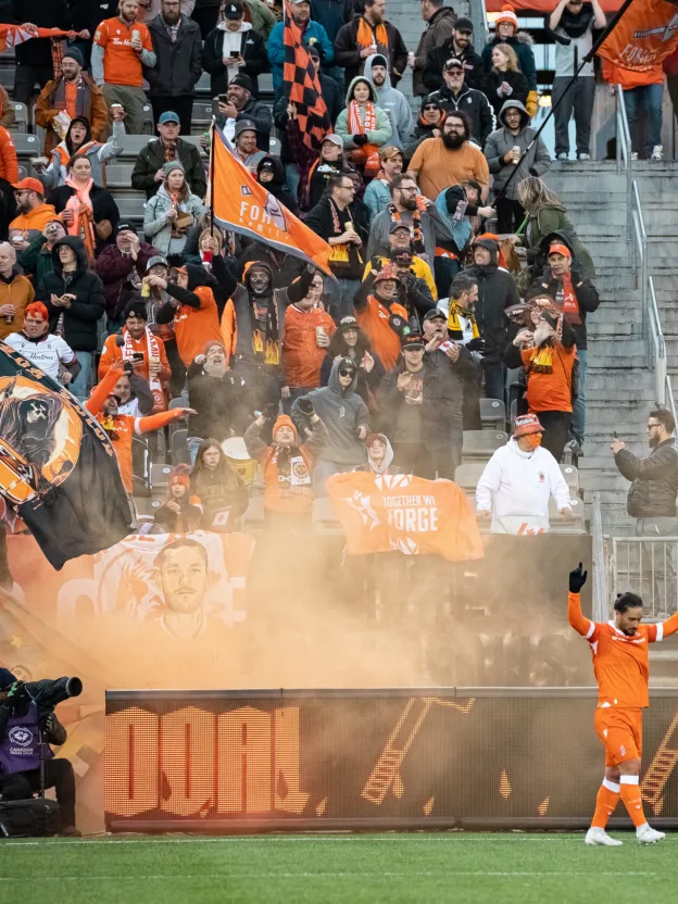 SETTING THE TONE** Despite threatening skies before kickoff, Saturday’s match drew a Forge franchise-record crowd for a home opener—excluding the free-admission debut in 2019—with 7,963 fans in attendance, breaking the previous mark of 7,351 from last year’s opener, also against Cavalry. It also marked the first-ever CPL match broadcast on TSN. TSN Debut for CPL: Forge vs. Cavalry** And viewers were treated to a showcase. The first half was tactical and cagey, with quality chances at both ends. The second half opened up, displaying the skill of the CPL’s two historically top teams. There were mistakes, of course, but both teams looked well-prepared. Each had played two intense Champions Cup matches. Forge had played 11 games total since returning for the 2025 season—most of them friendlies. Smyrniotis noted, “That long period helped us, especially with so many new faces. That extra time was valuable.” Both sides relished the national spotlight. “It was massive,” said Aird. “Two teams that have been in finals, big rivals. Everyone wants to see us play Forge. These are probably the most-watched games on OneSoccer. It was big for the players—we were on a national stage, more eyes on us. That’s the kind of football people want to watch: attacking, energetic. The last 25 minutes were exciting—lots of chances, even with the red card. We kept pressing, and they held strong.”