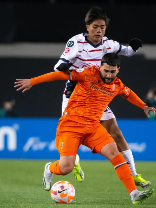 Forge FC kicked off their 2024 Concacaf Champions Cup campaign on Wednesday night at Tim Hortons Field in front of 11,513 fans, but it was Mexican giants Chivas Guadalajara who took an early advantage in the first round tie. Though Forge impressed going toe-to-toe with one of the biggest clubs in North America, Chivas ultimately proved too dangerous as standout performances from Cade Cowell and Fernando Beltrán in particular led them to a 3-1 win in the first leg. An early blow struck Forge just under 10 minutes into the match, when winger Kwasi Poku pulled up in the midst of a footrace with what appeared to be an injured hamstring. Bobby Smyrniotis had no choice but to turn immediately to his bench, bringing on Tristan Borges to replace him. The Canadian side worked hard containing their Mexican foes for much of the first half, though Chivas controlled the ball and continued to probe at the Forge defence. After about 25 minutes, though, as Forge attempted to relieve pressure through the middle, a Béni Badibanga pass through midfield got picked off and the Mexicans surged forward quickly. Fernando González flicked a clever ball in behind to the feet of Cade Cowell for a well-taken finish from high in the box to make it 1-0. Not to be outdone, though, Forge picked themselves up quickly. Playing the ball out of the back, they invited Chivas’ pressure on their right side and sprung Alessandro Hojabrpour, who outran his marker and sprayed it out wide to Borges. The substitute winger took the ball in stride and curled a gorgeous cross around the back of the Guadalajara centre-backs to where Terran Campbell — staying onside with a well-timed run — was available to score off the volley. However, just on the edge of halftime the visitors took the wind back out of Forge’s sails. Cowell took the ball down on the right flank and sailed it into the box, where Ricardo Marín found space and leapt to head the ball down and in by the near post, sending Chivas into halftime up 2-1. Chivas sunk another dagger into Forge’s hopes of a first-leg result shortly after the hour mark, when a turnover in midfield led to a quick ball out into space on the right side. Cowell again drove into the box and slotted his finish coolly into the net for his second of the night. Trailing by two, Forge emptied their bench in search of at least one more goal as the likes of Jordan Hamilton, Kevaughn Tavernier, Malcolm Duncan and Noah Jensen all entered the game to provide some energy. The night, however, belonged to Chivas, who capably repelled Forge’s attacks for the rest of the match, despite a few dangerous forays into the visitors’ penalty area. So, the two sides will now head to Guadalajara for the second leg, where Forge will have to climb the mountain of a two-goal deficit to keep their Champions Cup dreams alive. The return fixture at Estadio Akron kicks off Tuesday, Feb. 13 at 10 p.m. ET.