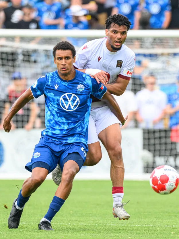 At last though, Halifax found a way through. With about 20 minutes to play, and Valour temporarily playing with 10 men as Zach Fernandez received treatment, the Wanderers found their way into the attacking third as Yohan Baï carried to the edge of the box and cut it back for Isaiah Johnston. The midfielder threaded a clever ball through the Valour defence and found Coimbra making a clever run to the back post, where he finished with his first touch and equalized.