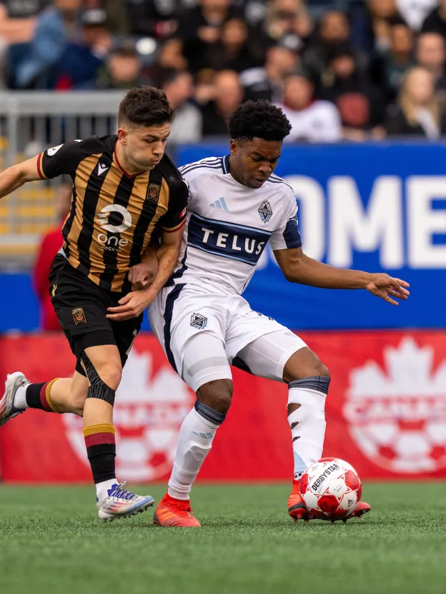 | Final Score: Valour FC 2-2 Vancouver Whitecaps FC Goalscorers: Romeo 38', Figueiredo 51'; Adekugbe 6', Ahmed 80' 2025 TELUS Canadian Championship -- Quarter-Final (Leg 1) |