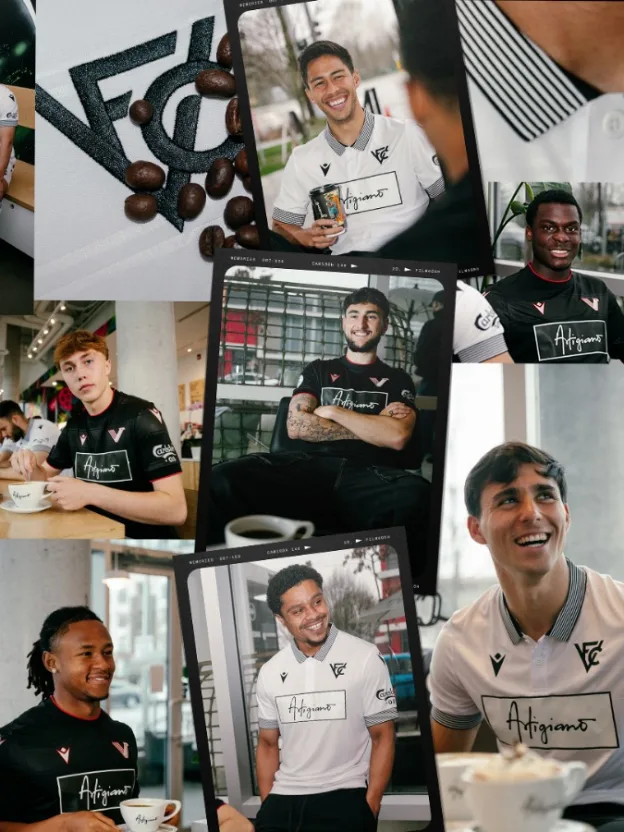At the centre of this year’s design is the idea that the kit shouldn’t speak louder than the game. It should elevate it. Letting football write its own story — game by game, player by player. That philosophy guided Stephanie Wood, VP of Marketing and Brand Development, who has led the creative direction of our kits from day one. “They’re inspired by that raw, real era of football”, said Wood — the ‘80s and ‘90s, when the game felt gritty, honest, and bold. It’s a nod to that time, but with a modern edge. We wanted to bring it all back to where it started.” Over the years, Wood’s creative vision has left a lasting mark on Canadian football culture. At Vancouver FC, she’s been the mind behind the Eagle Kit, the Cherry Blossom Kit, and the Community Kit — each design a blend of bold creativity and deep-rooted meaning. Before that, during her time at Pacific FC, she was the driving force behind some of the league’s most iconic and boundary-pushing designs — including the first-ever Indigenous Kit, the Bear Kit, and the Coastal Kit. Each of those kits had something to say — and many went viral for it. But this year, Wood took a different approach. After years of expressive design and eye-catching concepts, 2025 is about restraint. About the story. About the fabric and the football. “We’ve had fun. We’ve made noise. Now it’s time to take it all back to where it began,” she says. Vancouver FC also proudly introduces our new front-of-kit sponsor, Cafe Artigiano— a name that’s become part of the community fabric. Known for crafting great coffee and even better culture, Artigiano is more than a sponsor — they represent the rhythm and routine of the places we call home. And much like a good cup, our kits this year have their own flavour. “Artigiano is thrilled to partner with Vancouver Football Club. Two Canadian organizations committed to building home grown success, on and off the field. We couldn’t be more proud of this exciting new chapter for both organizations.” Said Dean Shillington, President and Owner of Artigiano. So we brewed up two distinct kits. Each one different in flavour — but both unmistakably us.