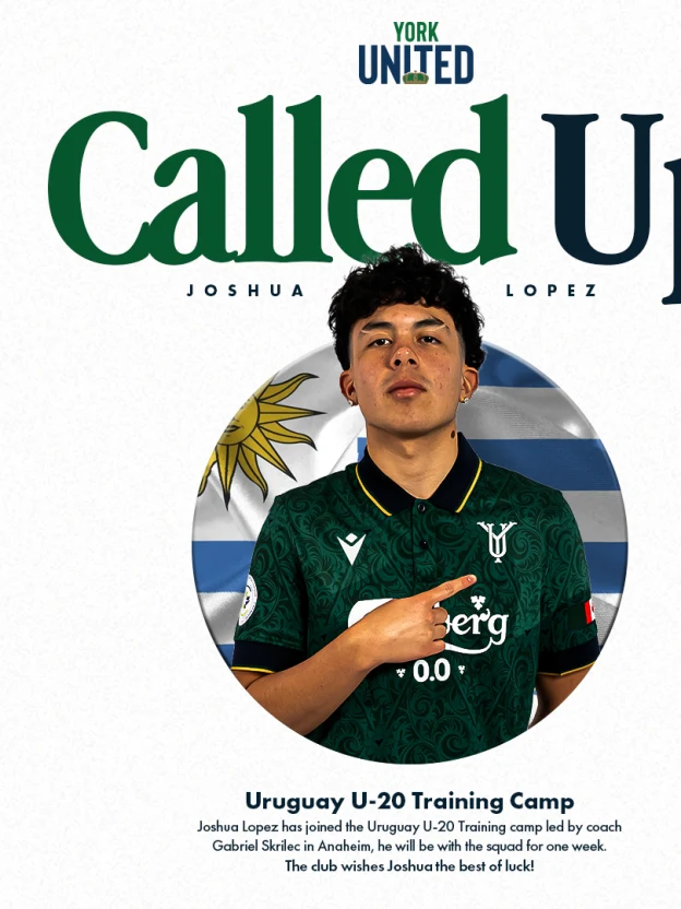 Toronto, ON (July 15, 2025) – York United FC is proud to announce that Academy midfielder Joshua López has been called up to the Uruguay U-20 National Team for a training camp taking place in Anaheim, California, from July 13 to 19.